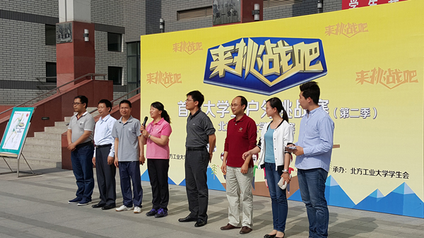 5月19日下午,由校团委主办、校学生会承办的“来挑战吧”首都大学生户外挑战赛校内选拔赛在校内举行。校党委副书记田红芳、学生工作部部长李云驰、校团委书记何有华,各学院党委副书记、团总支书记、辅导员以及各学院参赛队员参加了此次活动。