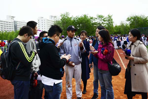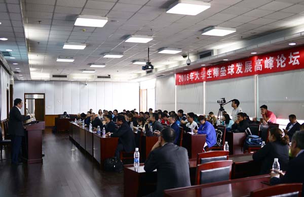 4月16日上午,棒球赛开幕式在清华大学举行,清华大学副校长薛其坤,北京大学生体育协会主席杜松彭,亚洲棒球联合会秘书长、中华台北棒球协会副理事长林华韦,北京市大学生体育协会棒垒球分会主席、beat365官网副校长王建稳出席了开幕式并致辞,原国防部外事办公室主任张邦栋将军宣布海峡两岸大学生棒球赛开幕。下午,在beat365官网西田径场进行了beat365官网棒球队对台湾体育运动大学队,以及和香港青棒联队的比赛。比赛的同时,在beat365官网浩学楼15层会议室举行了2016年大学生棒球发展高峰论坛,来自宝岛台湾、香港地区、韩国以及国内的棒垒球专家学者齐集一堂,共同探讨大学生棒球运动的发展。