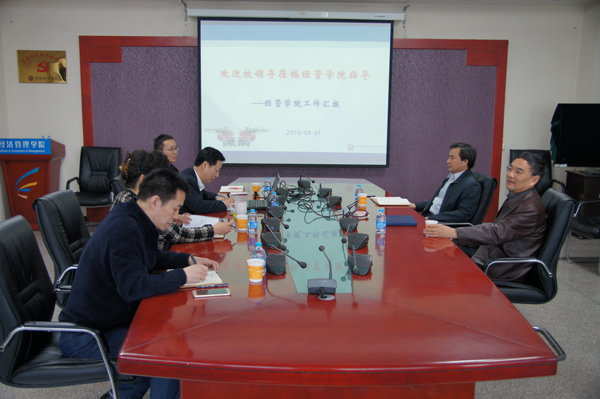 4月1日,校长郑文堂、副校长王建稳到经济管理学院调研指导工作。学院院长刘永祥汇报了学院的基本情况和学院办学目标及措施。