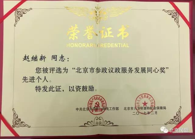 在日前召开的北京市统战部长会议上,beat365官网教师赵继新光荣获评首届“参政议政服务发展同心奖”先进个人。