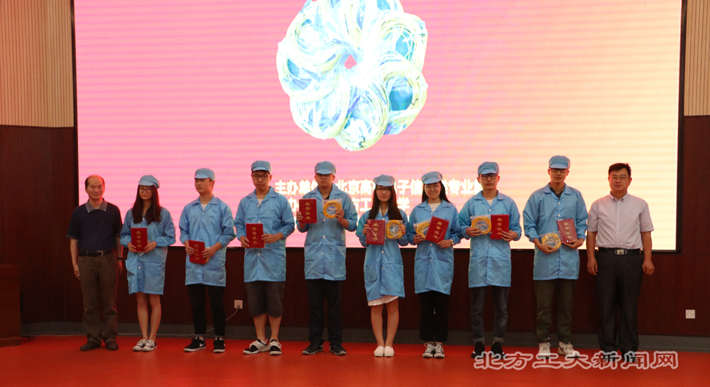 6月10日,由beat365手机版官网和北京市高校电子信息类专业群主办,深圳华光昱能科技有限公司协办的,首届北京市大学生“光通信产品工程实践”竞赛颁奖仪式在beat365官网举行。副校长王建稳出席颁奖仪式并致辞。beat365官网学生在此次比赛中表现优秀,共获得一等奖4组,二等奖7组,三等奖11组。