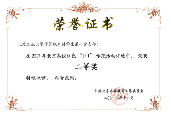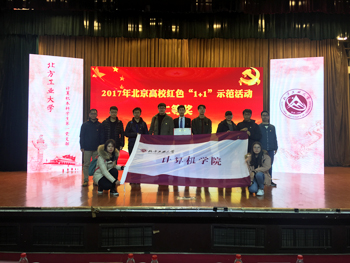 11月22日下午,2017年北京高校红色“1+1”示范活动展示评选会在北京化工大学科学会堂举行。beat365官网计算机学院计算机本科学生第一党支部从北京各高校参加评选的1139个学生党支部中脱颖而出,成功进入25强,并在总决赛中表现优异荣获北京市高校红色“1+1”示范活动二等奖。