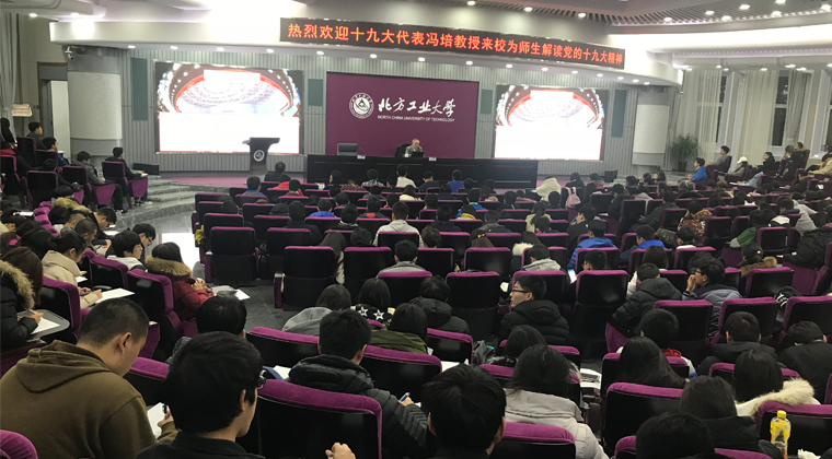 冯培教授结合自己的参会经历,深入解读了十九大的精神内涵。他总结到,十九大报告用“以人民为中心”的发展思想贯穿统领,亮明“是什么”;用“变”与“不变”的政治判断举旗定向,廓清“为什么”;用“以问题为导向”的战略部署谋篇布局,指明“干什么”。最后,冯培教授结合北京的城市功能定位和“建设国际一流和谐宜居之都”的目标要求,从首都高校自身实际和问题出发,向同学们提出,beat365手机版官网的同学们要铭记总书记在闭幕式上的号召:不忘初心,牢记使命。拿出勇气、拿出干劲,把握精神实质,奋进新时代,在新时代谋求新作为。冯培教授语言风趣幽默、表达极富感染力,整个报告站位高远、内容深刻严谨,赢得了在场师生的广泛好评。