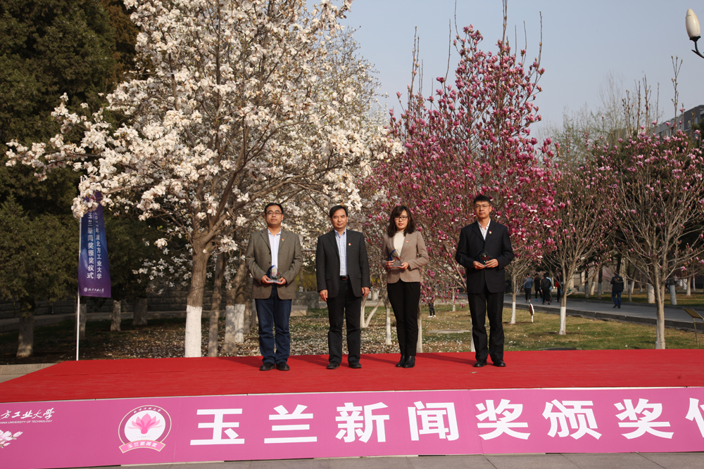 庄重而又温馨的颁奖仪式吸引了学校师生和不少校外来访者的驻足,人们纷纷在颁奖台前和玉兰花下驻足,拍照。工大故事在玉兰花的芬芳中弥漫、流淌,传向社会的各个角落。