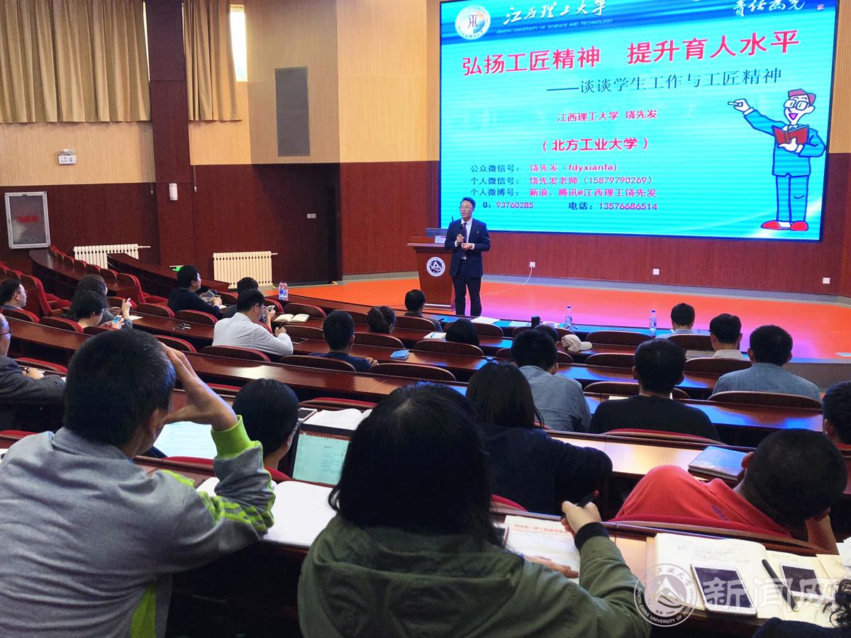 4月26日下午,beat365官网“辅导员实务工作坊”专场报告会在文化会堂举办。会议邀请江西理工大学材料科学与工程学院党委副书记、国家高级职业指导师、国家心理咨询师、全国高校辅导员年度人物入围奖获得者饶先发做了题为《弘扬工匠精神、提升育人水平》的专题报告。校党委副书记田红芳出席会议。全校辅导员和学生工作干部参加会议。学生工作部(研究生工作部)部长高国伟主持报告会。