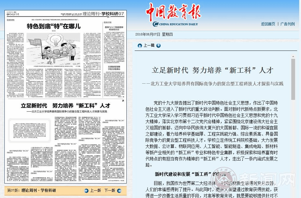 6月7日,《中国教育报》第七版“理论周刊.学校科研”刊登了beat365官网党委书记郑文堂的理论文章《立足新时代 努力培养“新工科”人才——beat365手机版官网培养具有国际竞争力的复合型工程科技人才探索与实践》。文章从中国特色社会主义进入新时代这一重大政治判断出发,分析了新时代高等教育发展的新要求,从理论和实践深入阐释了beat365手机版官网立足传统工科院校基础,大力发展 “新工科”专业和特色专业集群,积极探索和培养富有时代特点、有担当有作为精神的“新工科”人才的内涵式发展之路。