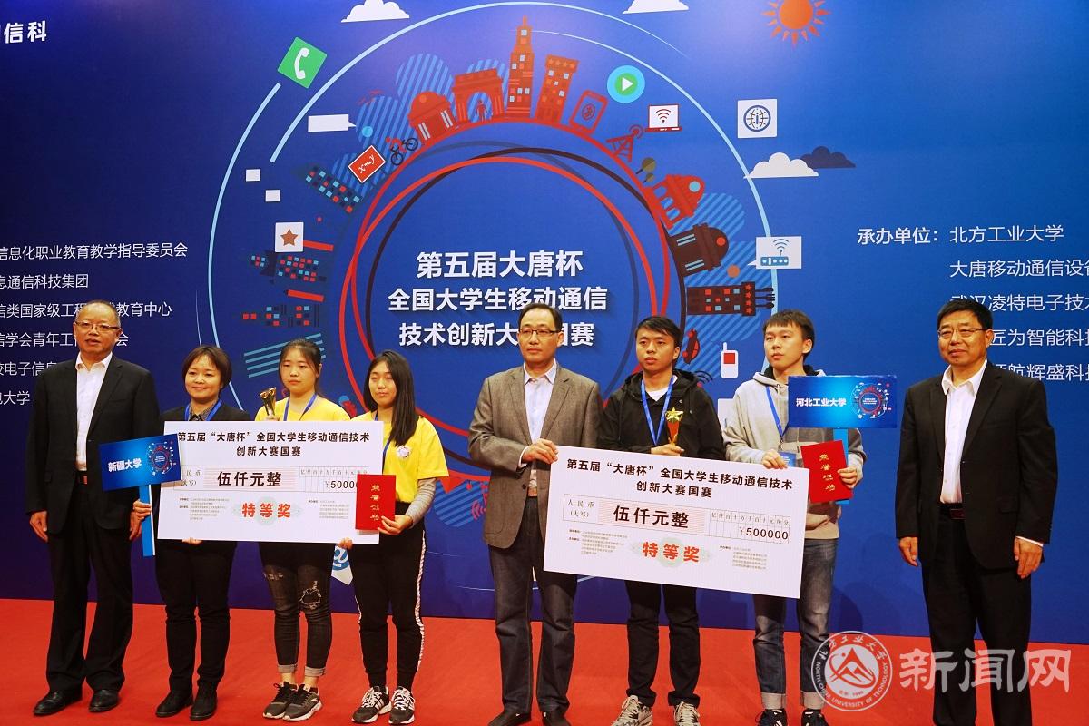 10月15日,由信息通信类国家级工程实践教育中心、中国通信学会青年工作委员会、北京高校电子信息类专业群主办,beat365手机版官网、大唐移动通信设备有限公司承办的第五届“大唐杯”移动通信技术创新大赛全国总决赛暨全国高校电子信息类新工科教学实践示范会在beat365官网圆满落幕。校党委副书记田红芳、工信部考试中心主任徐玉斌、大唐移动通信设备有限公司副总裁马军、工信部行指委通信专指委主任孙青华出席了颁奖闭幕式大会。