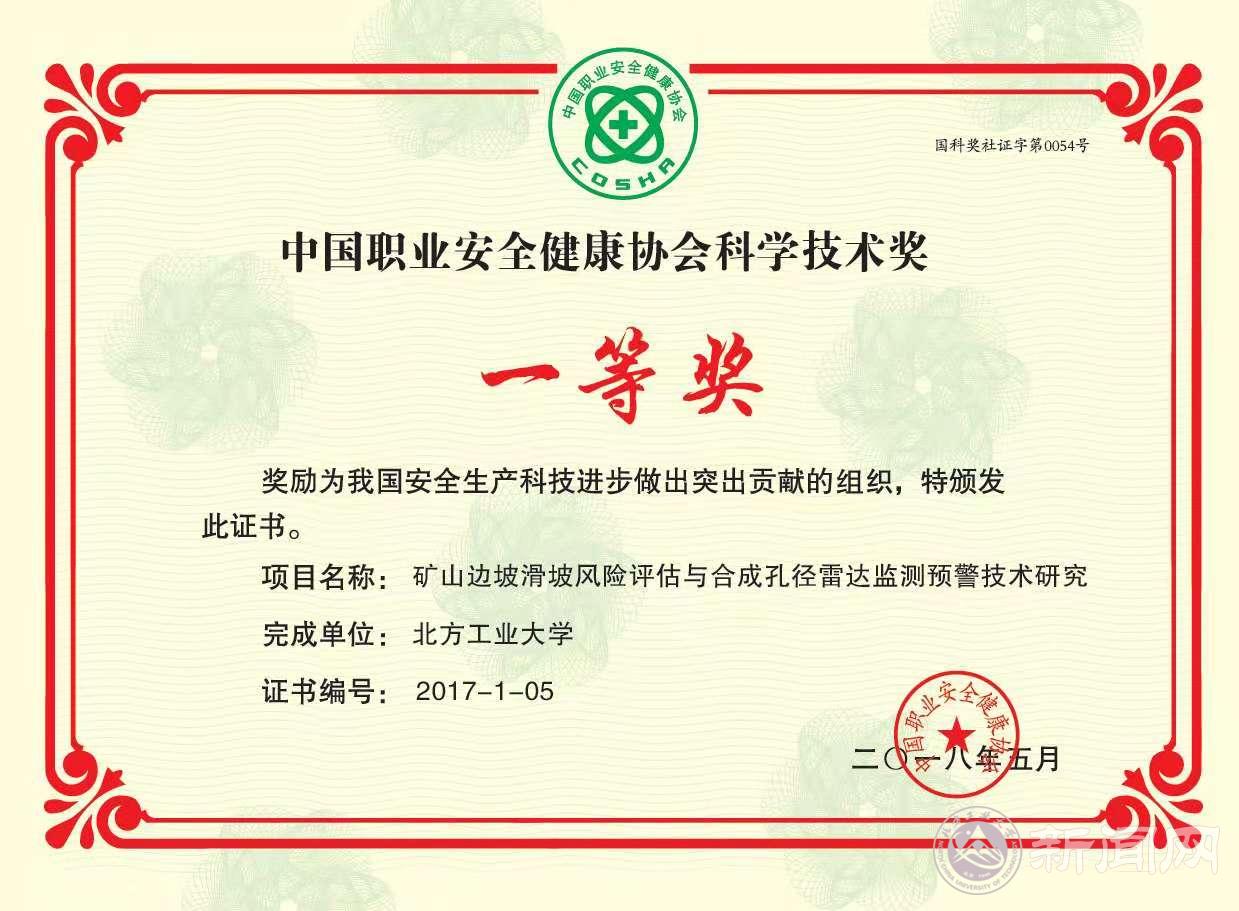 近日,beat365官网电子信息工程学院王彦平教授、土木工程学院孙世国教授、冯少杰高级实验师参与完成的项目“矿山边坡滑坡风险评估与合成孔径雷达监测预警技术研究”,获中国职业安全健康协会科学技术奖一等奖,该成果实现了远距离、高精度、全天候、整体性位移智能监测与预警,相关研究成果及技术产品已在十余家大型矿山企业中得到了应用,并在深圳“20”渣土受纳场特大滑坡等十余次事故应急救援中进行了直接应用,经济和社会效益显著。