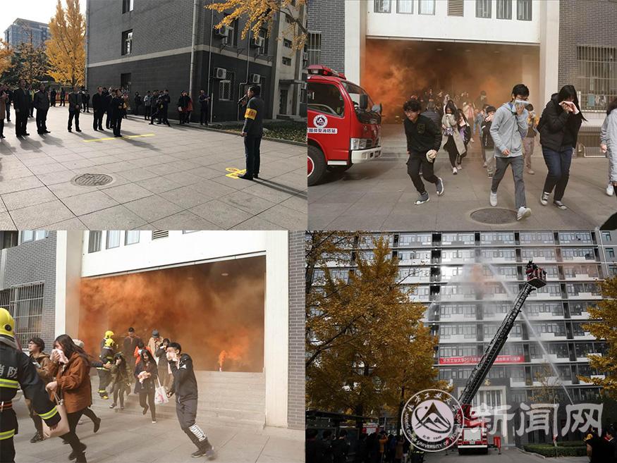 11月7日中午,学校联合石景山区消防支队在馨斋举行了消防灭火救援疏散演习,学校党委副书记田红芳和安稳、学工、资产、后勤、服务中心、各学院等领导出席了演习现场。本次演习主要进行了模拟火情、人员疏散、微型消防站紧急出动、云梯救人、灭火救援、抢救伤员等科目。同时,消防集中控制室按照预案启动火灾自动报警系统及消防联动设备等科目的演练,出动微型消防车1台、消防云梯车1台、高压水炮车2台,消防官兵20人、消防维保单位及校警36人、组织指挥及工作人员120余人和2000余名学生参加了此次演习。通过演习,既提高了师生消防安全“四个能力”,也检验了学校消防基础设备设施、消防报警系统的运行情况,取得了良好成效。