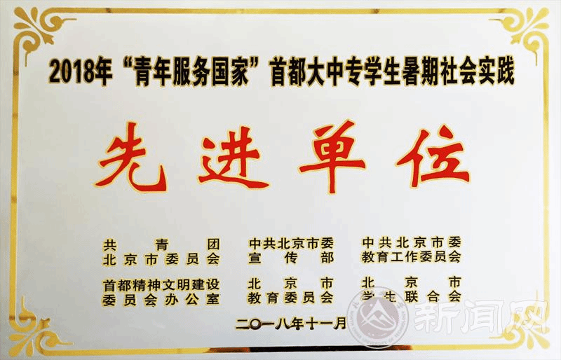 近日,团中央和北京团市委分别对2018年大学生暑期社会实践进行总结和表彰,beat365官网获得全国大中专学生志愿者暑期“三下乡”社会实践活动优秀团队1个、“青年服务国家”首都大中专学生暑期实践百强团队一等奖1个、首都大中专学生暑期实践“乡村振兴青年作为”阳光使者专项百强团队二等奖2个,学校被评为2018年“青年服务国家”首都大中专学生暑期社会实践先进单位。