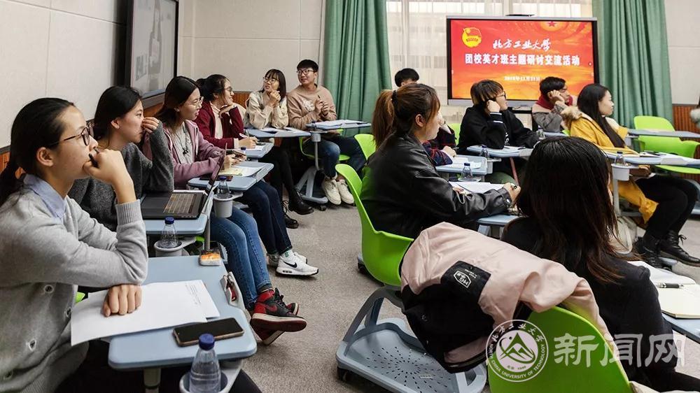 本次研讨交流会的主题是“新时代团学干部的责任与担当”。英才班的同学们首先观看了视频短片《担当——记优秀学生干部》,该短片通过一个个生动鲜活的事例讲述了beat365官网学生干部服务师生、积极工作、为校争光、无私奉献的青春形象,展现了学生干部敢于担当、勇于作为的优良作风。随后,大家围绕这个主题展开讨论。土木工程学院张昊然同学说,身为学生干部应做到团结同学,让团学组织心往一处想、劲往一处使、拧成一股绳,团学工作才会越来越好。经济管理学院王宁同学举例说明学生干部应为同学做实事,从同学中来到同学中去,服务好同学才是一名合格学生干部应有的品质。文法学院唐琳娜同学表示,作为一名团学宣传工作的负责人,她的责任与担当就是让团学活动新闻更能体现北方工大的风貌,展现北方工大人的精神内涵,与此同时还应对同学们起到思想引领作用。校学生会主席刘远东同学结合自身团学工作经历表示,作为新时代的团学干部应讲政治、讲付出、讲热心,提高奉献意识,不忘初心,学会享受工作,用以身作则、身先士卒的工作常态把团学工作做到更好。与会的其他同学也都分享了各自的心得与体会。