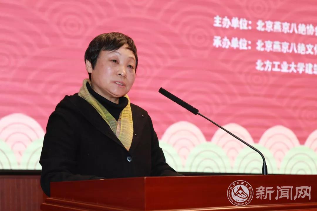 燕京八绝传承人万紫大女士和北京燕京八绝协会常务副会长柏群老师分别致辞。万紫女士表示,党的十九大以来,在党和政府的政策指引和社会各界的积极推动下,燕京八绝事业得到了长足的发展。她希望未来所有的非遗传承人继续秉持着“敬业、精益、专注、创新”的工匠精神,努力创作具有传统工艺和北京特色的燕京八绝艺术精品。柏群副会长在致辞中表示,燕京八绝从2010年结缘西山永定河文化带,在石景山区的千年古刹承恩寺建立了燕京八绝的艺术馆。多年来,燕京八绝与北方工大都是好伙伴和好邻居,希望通过此次活动,搭建起校企合作、传承文化、传播文明的平台,为石景山区的文明创城事业、为首都四个中心建设,为中华文明的薪火相传,在各自的领域做出新的更大的贡献。