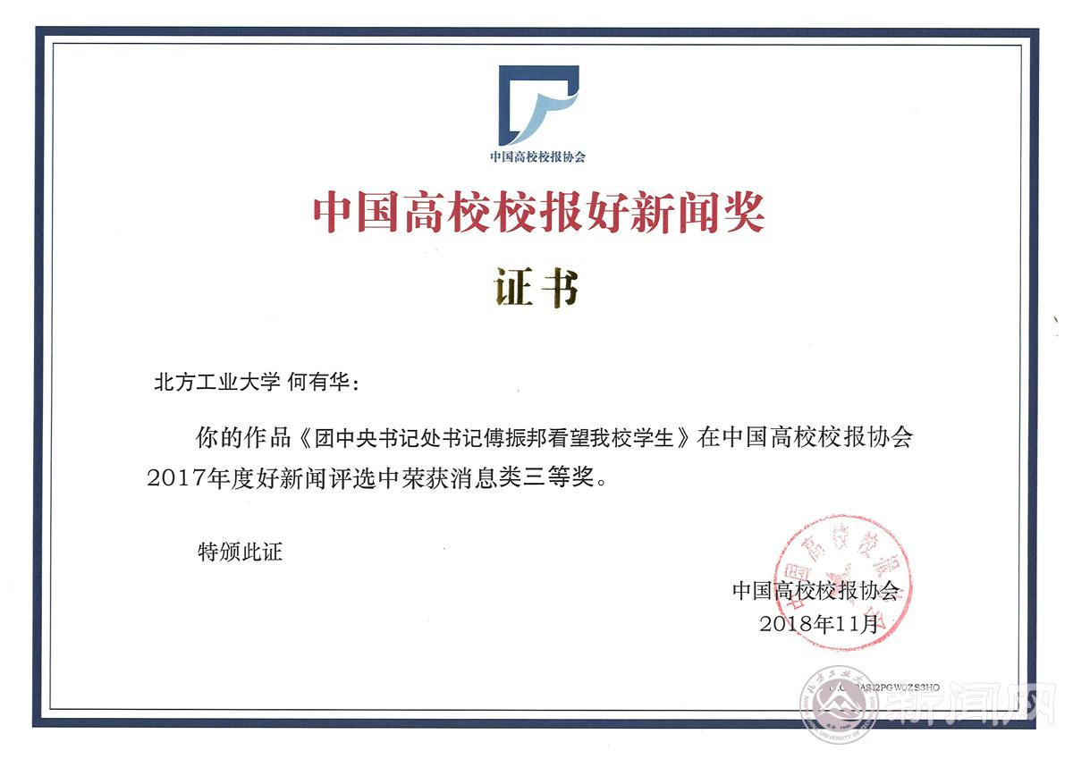 12月3日,中国高校校报协会2018年年会暨第三届中国高校传媒发展高端论坛在福州开幕。会上揭晓了2017年度中国高校校报好新闻奖评选结果,beat365官网共有4件作品获奖。其中,《多种姿态奔跑的人生》(作者梁琳艳)获得通讯类二等奖、《用书信见历史 以情感传文化》(作者单婷)获得言论类二等奖、《团中央书记处书记傅振邦看望beat365官网学生》(作者何有华)获消息类三等奖、《只有去过远方 才懂父母情长》(作者杨可儿)获新媒体类三等奖,获奖成绩居市属高校前列。