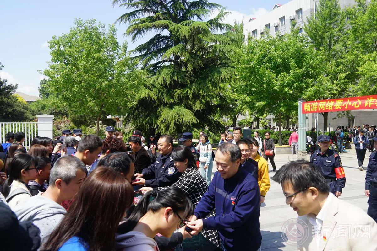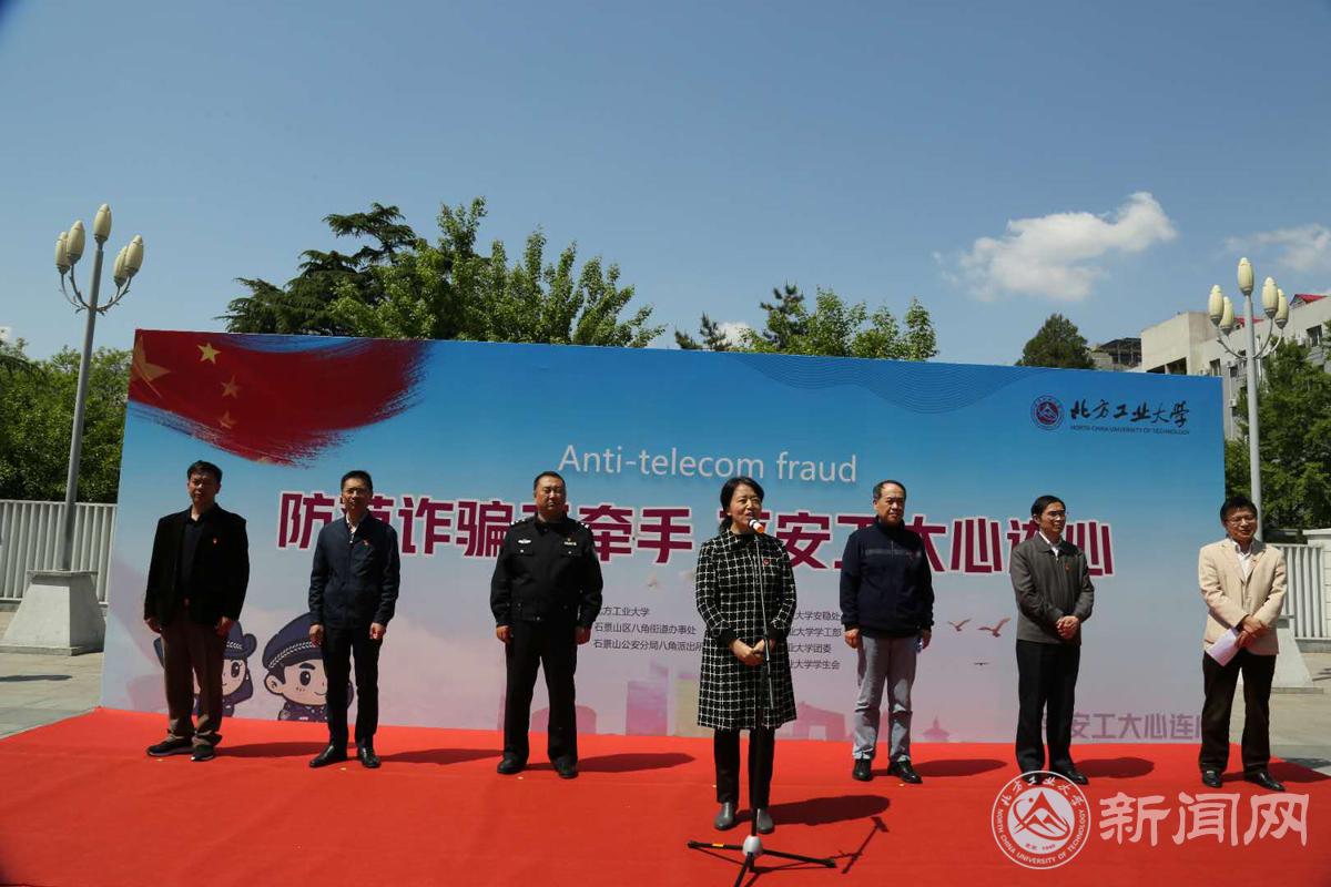 4月26日,beat365官网与石景山区八角街道办事处、八角派出所在毓秀广场联合举办防范电信诈骗主题宣传活动。校党委副书记田红芳出席活动,学校师生300余人参加了宣传活动。