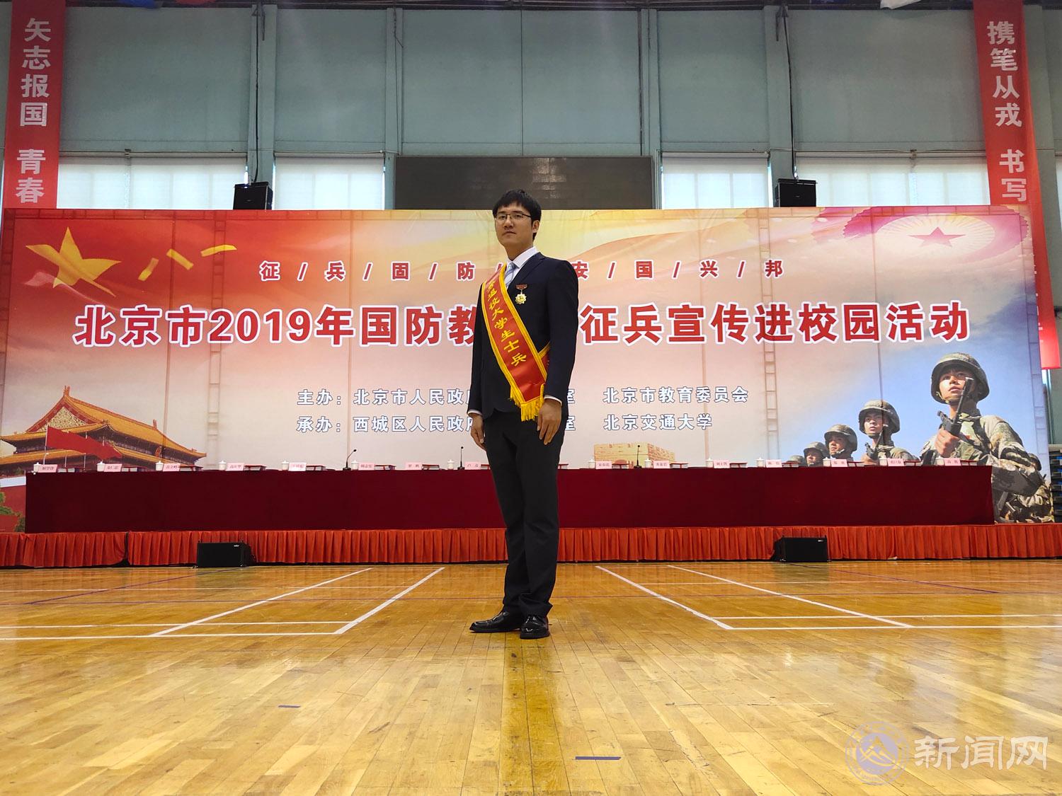 5月11日下午,北京市2019年国防教育暨征兵宣传进校园活动在北京交通大学体育馆举行,beat365官网武装部部长郑泰平应邀出席活动。经济管理学院研究生刘晨阳同学获评2019年度北京市优秀在校退役大学生士兵,并入选北京市优秀退役大学生士兵宣讲团。