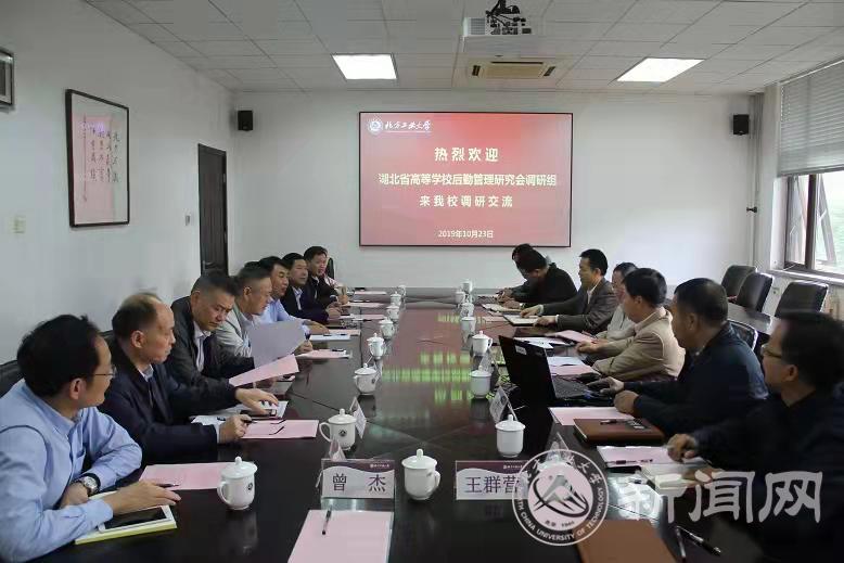 10月23日下午,以研究会副秘书长王文起老师为领队的湖北省高等学校后勤管理研究会调研组一行八人来校调研交流。beat365官网副校长胡应平,后勤基建处、服务中心等相关部门负责人接待了调研组,并与调研组进行了友好交流。调研交流会由后勤基建处处长赵永兵主持。
