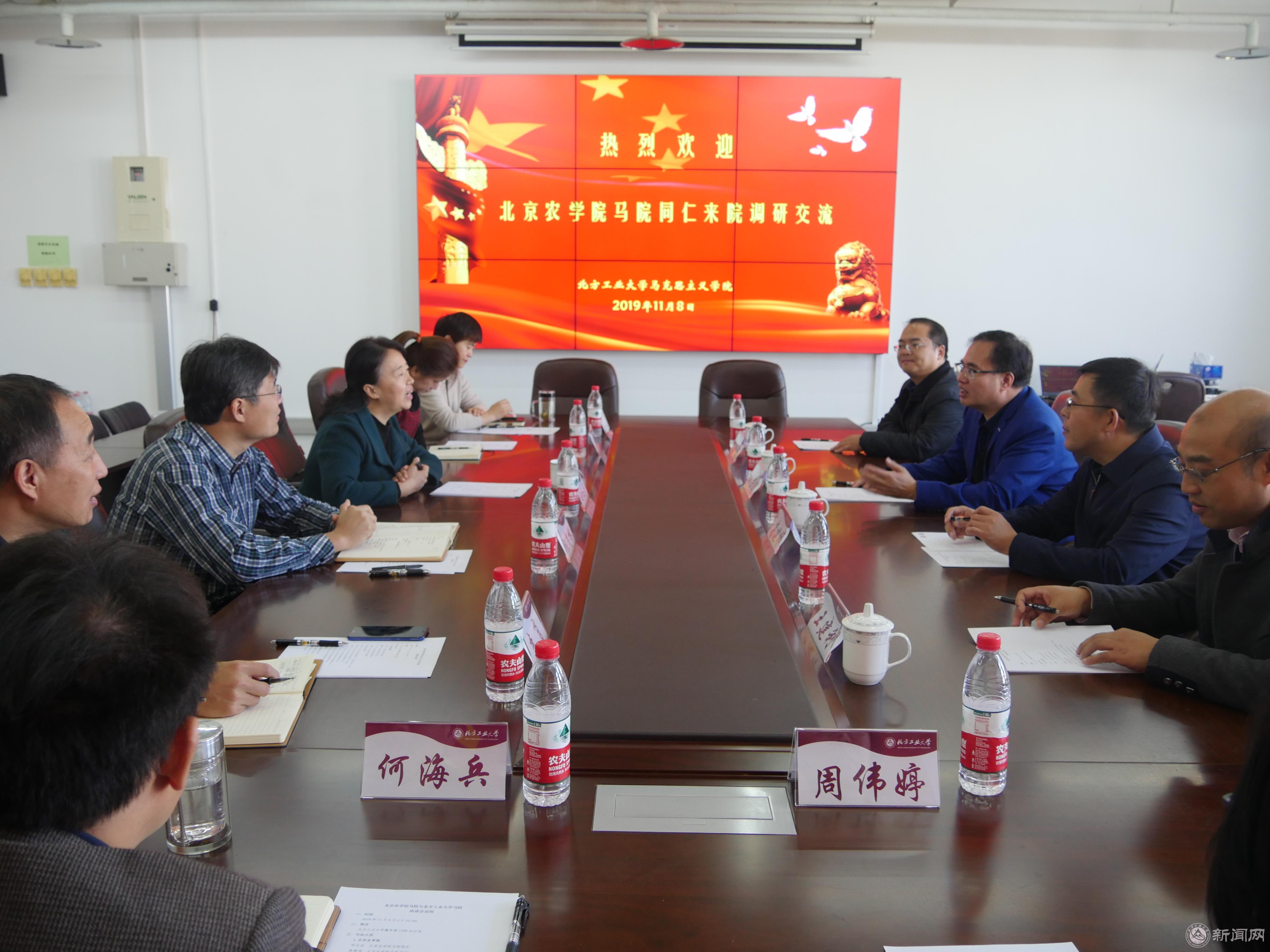 11月8日上午,北京农学院马克思主义学院华玉武院长、高建伟书记等一行4人来beat365官网开展“不忘初心、牢记使命”主题教育专题调研活动。校党委书记郑文堂亲切接见了到访客人,校党委副书记田红芳全程陪同参加了调研活动。