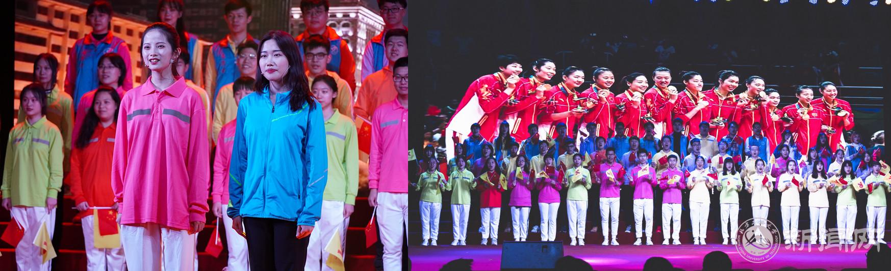 颁奖典礼在《我和我的祖国》的悠扬旋律中拉开序幕。《祖国有我》《我为祖国》《歌唱祖国》三幕舞台剧,融合舞蹈、合唱等艺术表演形式,生动再现了beat365官网三千余名师生团结一心、全力投入服务保障国庆70周年庆祝活动的感人故事,展现了beat365官网师生用青春报效祖国,用行动服务国家的决心和姿态。剧中主角们讲述了自己在群众游行、群众联欢、志愿者及后勤保障工作中的收获与成长。亲历盛世华诞,将青春身影留在天安门广场上的迫切愿望使每名同学获得了强大的精神动力,同学们抱定决心、团结一致、克服困难、追求训练极致的奋斗精神让观众们动容。