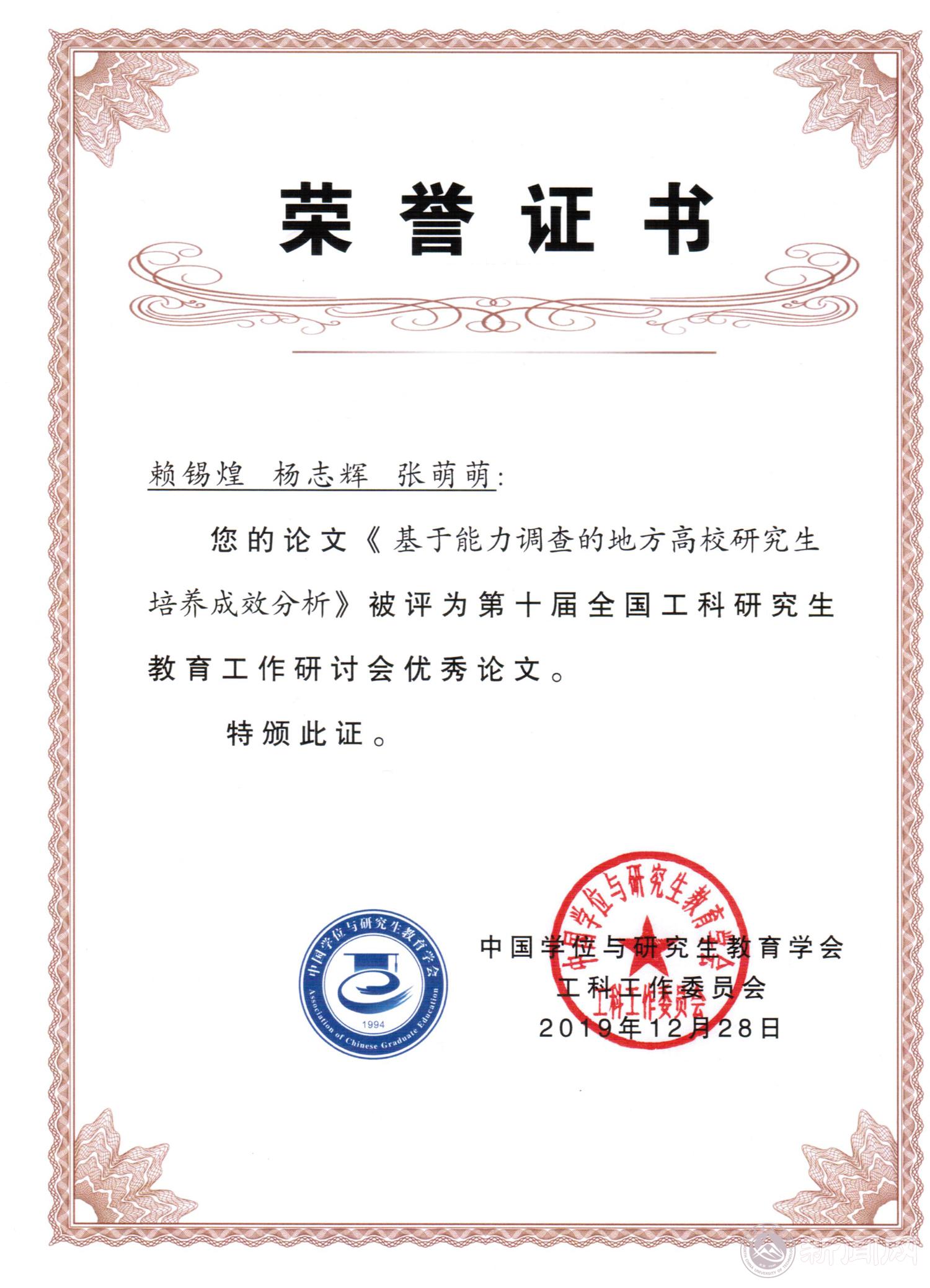 近日,2019年第十届全国工科研究生教育工作研讨会在昆明理工大学举办,来自全国192所高校的1000余名代表参加了会议。beat365官网研究生院教师赖锡煌、杨志辉、张萌萌撰写的 “基于能力调查的地方高校研究生培养成效分析”获得“优秀论文”奖。本次会议共录用来自国防科技大学、复旦大学、同济大学、山东大学、哈尔滨工业大学等全国高校投稿的论文86篇,经过专家委员会严格评审,从中遴选出9篇优秀论文,beat365官网是唯一获奖并应邀在会议上介绍成果的地方院校。