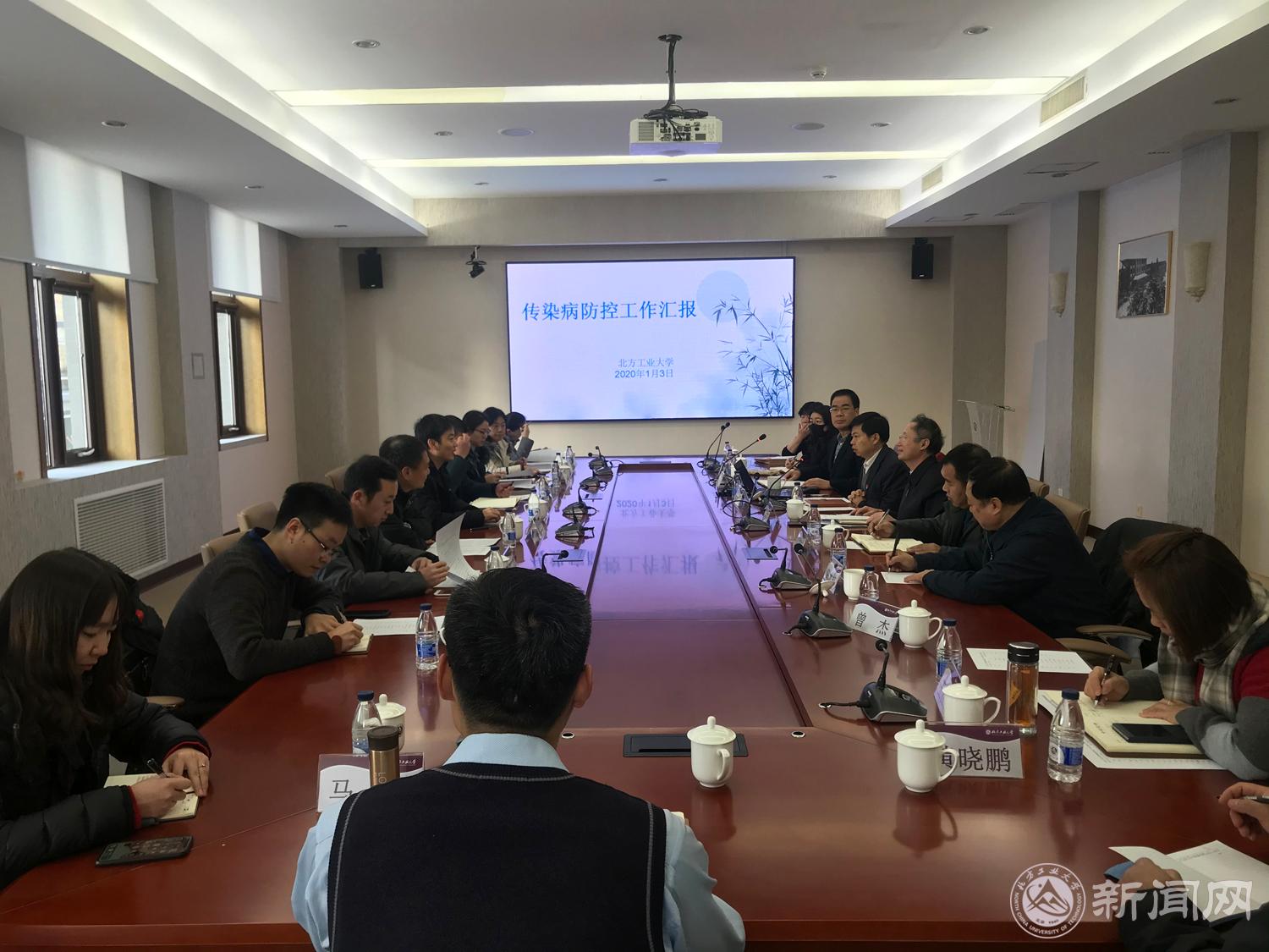 1月3日上午,传染病防控专家组一行莅临beat365官网开展冬季传染病防控情况检查工作。专家组由北京市教委体卫艺处处长凌长龙、北京市卫健委疾控处副处长纪晋文、北京市教委后勤处处长于杰、北京市教委体卫艺处主任刘梦龙、北京市疾控中心传染病地方病防制所主管医师王小莉、北京市疾控中心消毒与病媒生物防制所副主任包卫华、石景山区卫健委副主任杨纪峰、石景山区疾控流病科科长白云、石景山区卫健委疾控科科长刘丽娜9名专家组成。副校长胡应平主持了传染病防控工作汇报会,后勤基建处、服务中心、学工部等部门负责人参加了汇报会。