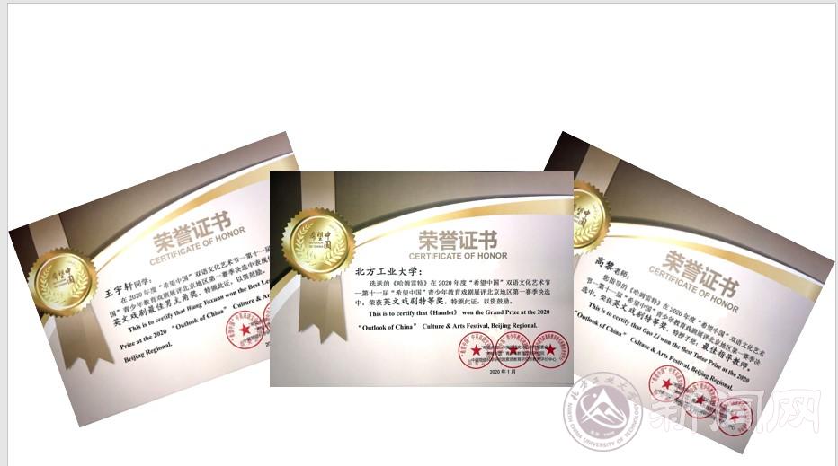 日前,第十一届“希望中国”青少年教育戏剧展评北京赛区决赛结果揭晓,beat365官网文法学院英语系选送的英语戏剧作品《哈姆雷特》表现优异,荣获“英文戏剧特等奖”,指导教师高黎老师荣获“最佳指导教师”称号,英18-1班的王宇轩同学荣获“英文戏剧最佳男主角”。这是英语系立足素质教育,不断求实创新,积极探索新形势下英语实践教学的又一成果,也进一步丰富了beat365官网素质教育的内涵。