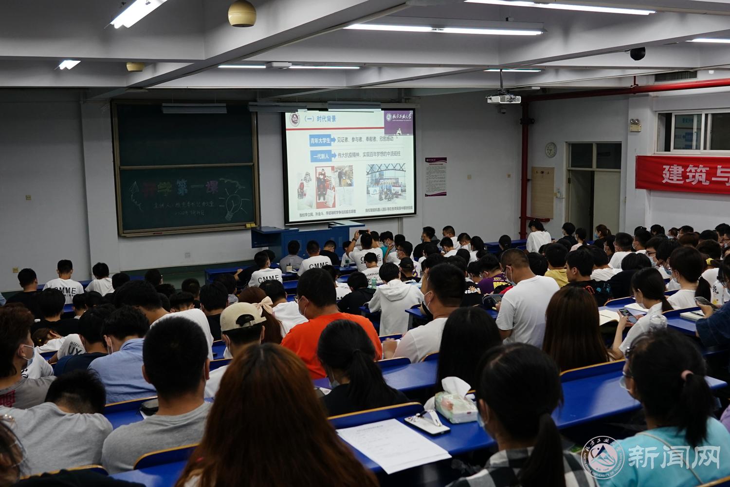 9月14日晚,校党委书记郑文堂为2020级本科新生讲授“开学第一课”暨《习近平新时代中国特色社会主义思想概论》第一讲。全校2020级新生参加学习。