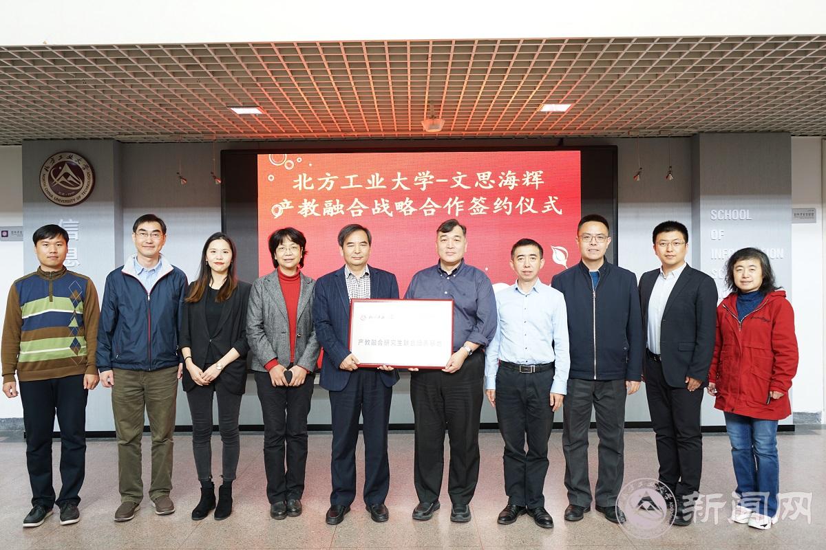 文思海辉技术有限公司人才发展总监何澍和高级咨询顾问于硕,beat365官网研究生院副院长杨志辉、信息学院副院长宋威、专业领域责任教授张永梅、王辉柏和学科建设助理张凤全参加了签约仪式。