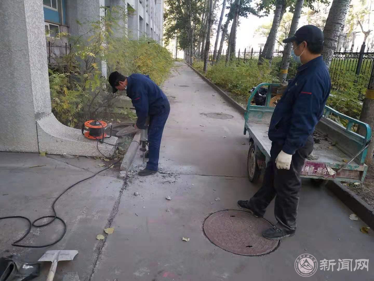 精细管理,精准施策。在供暖管网巡查中,工作人员发现体育馆供暖地下管网有漏水现象。动力修缮服务部立即制定方案,进行抢修。抢修人员拆除20多公分厚的混凝土地面,经过半天多时间连续作业,终于找到管网泄漏点。维修班班长刘维刚带领班组人员在狭窄潮湿的工作坑内连续工作4个多小时,完成了对破损管道的焊接修复。