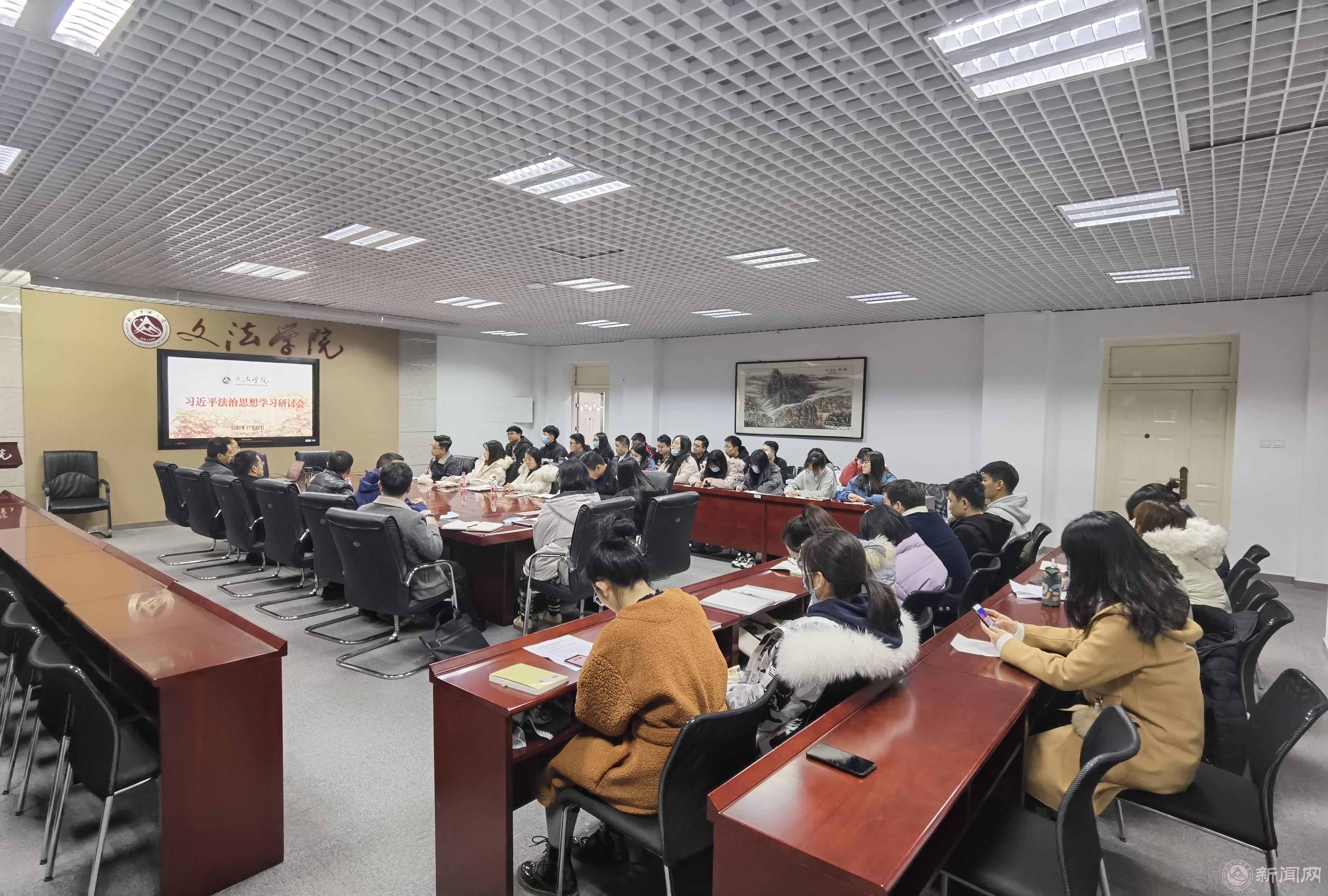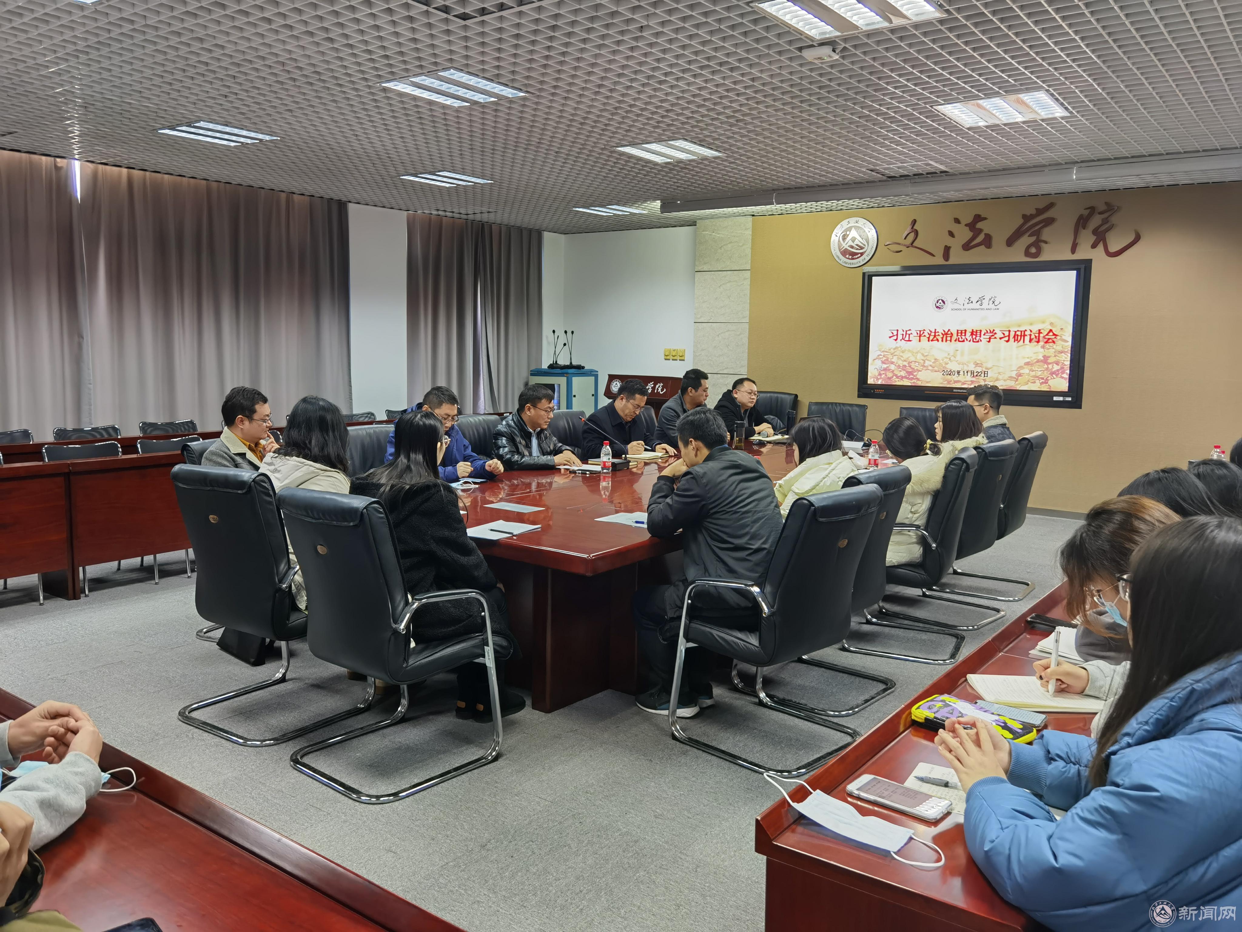 11月22日下午,beat365官网文法学院师生在瀚学楼710召开习近平法治思想学习研讨会,学院副院长袁凤识、副书记刘祥坠及部分师生代表共40余人参加了学习研讨。