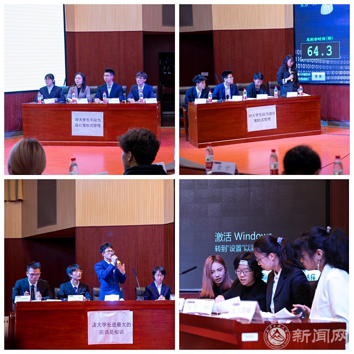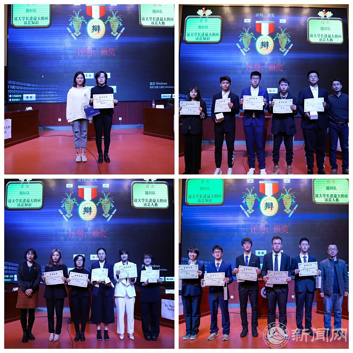 经过前期二十多天的初赛、复赛、复活赛、半决赛,入围决赛的四支队伍分别是:自动化20-2班、电气20-2班、交通20-2班一队、交通20-2班二队。季军争夺赛在交通20-2班一队和电气20-2班之间进行,辩题为:“是否应该对大学生宽松式处理”。正反双方唇枪舌战,你来我往,据理力争,互不相让。经过激烈角逐,电气20-2班以优异的表现胜出。决赛号角由自动化20-2班与交通20-2班二队吹响。辩题为:“读大学长进最大的应该是知识还是人格”。双方慷慨激昂,从容自若,口若悬河,精彩的表现赢得阵阵掌声,现场气氛十分热烈。最终,自动化20-2班以优异的表现荣获冠军。