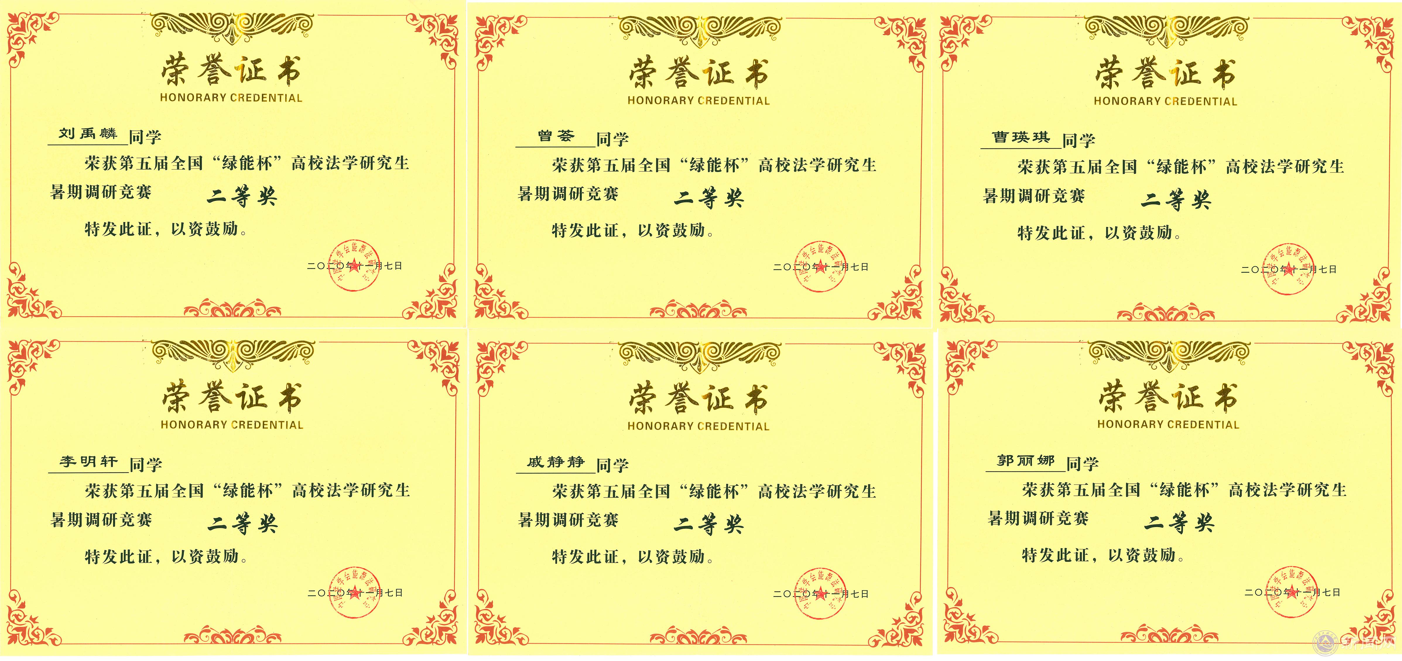 日前,由中国法学会能源法研究会主办的第五届全国“绿能杯”高校法学研究生暑期调研竞赛举办答辩评审和颁奖仪式,由中国石油大学(华东)承办,采取线上形式进行。28支参赛队伍提交的28份调研报告在经过书面评审的初评和复评之后,进行了口头答辩评审,最终结果正式揭晓,beat365官网共组织三支队伍参赛,均获奖项,取得佳绩。
