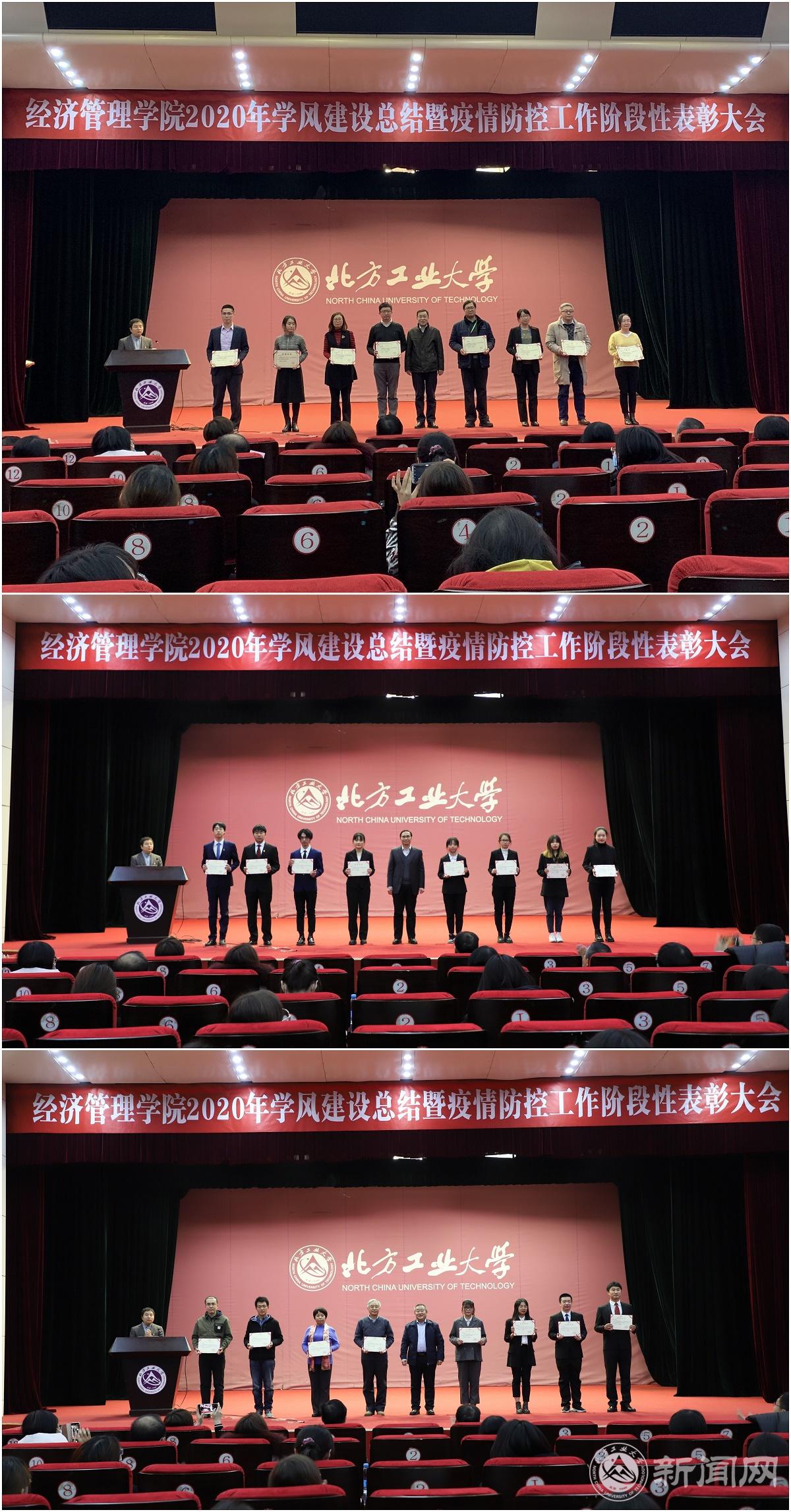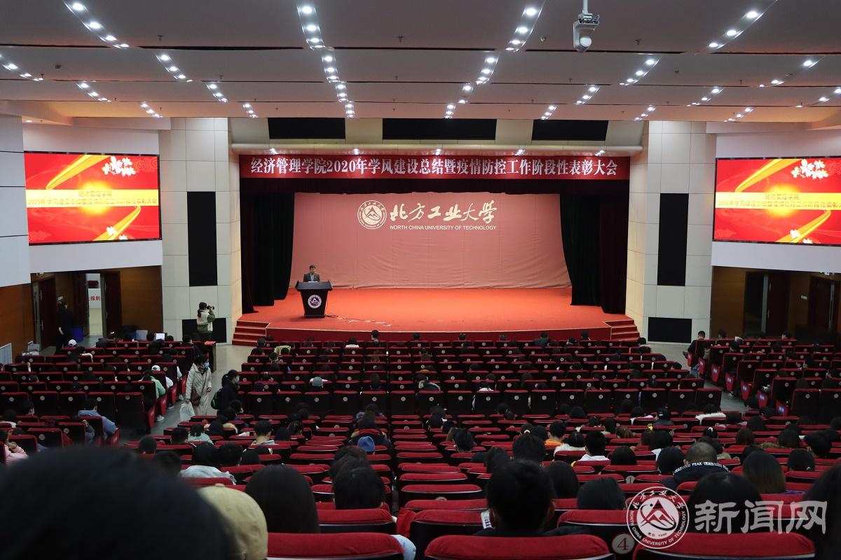 12月10日晚,经济管理学院在图书信息楼报告厅举行2020年学风建设总结暨疫情防控工作阶段性表彰大会。教务处处长刘文楷、学生工作部部长高国伟、学院领导班子成员、各系(中心)主任、班导师、辅导员和400余名学生参加了此次大会。大会由学院党委书记王伟宾主持。