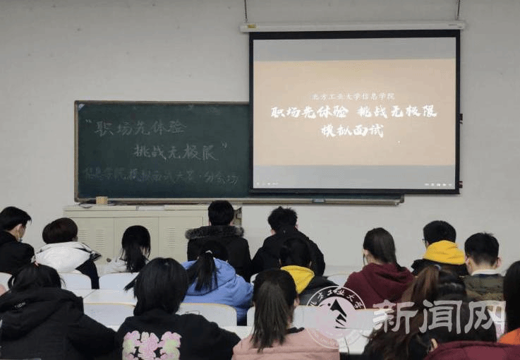 低年级学生观看模拟面试大赛现场直播