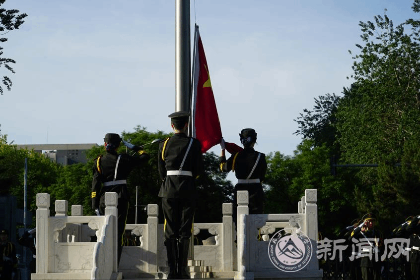 伴随着清晨的朝阳和国旗班同学们整齐的步伐,升旗仪式正式开始。在全体师生的注目中,五星红旗冉冉升旗。