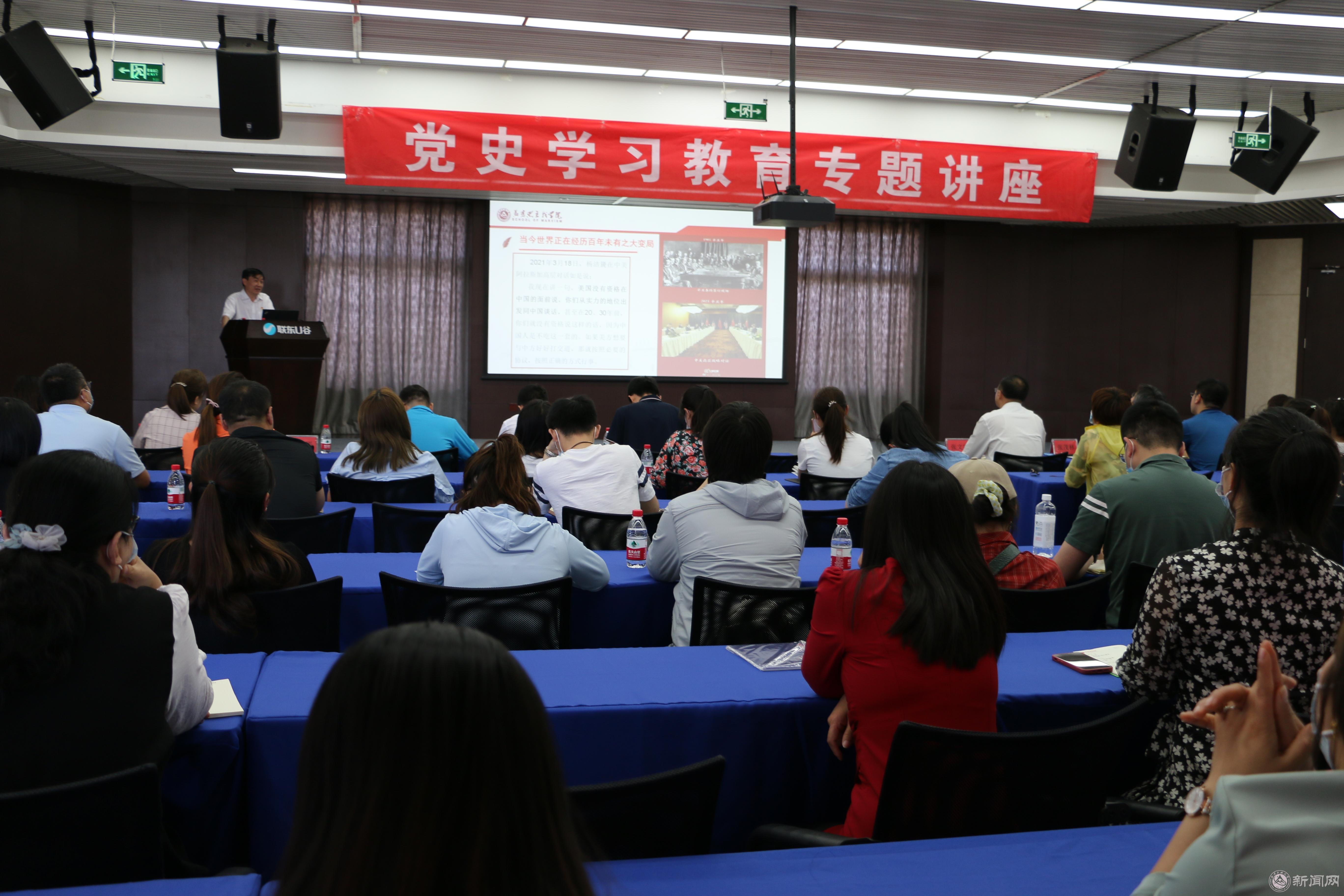 袁本文院长做了主题为“学习党史,明理增信,增强守初心担使命的思想与行动自觉”的党史学习教育报告,从中国共产党历史是一部什么样的历史、为什么要学习中国共产党历史以及怎样学习中国共产党历史三个方面进行了深刻讲解。他强调,学习中国共产党历史正当其时、十分必要,我们要强化政治自觉、坚守责任担当,推动党史学习教育与自身业务深度融合,把学习成效转化为工作动力,实现学习教育与落实工作“双促进”。