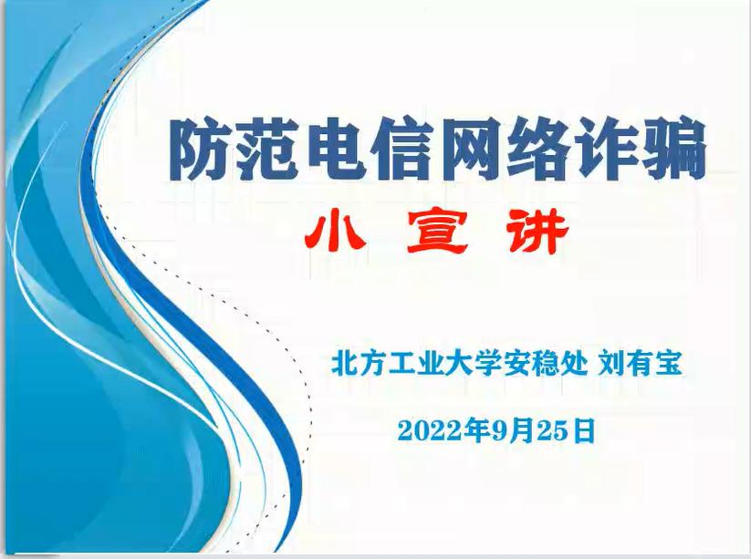 安稳处刘有宝老师进行了防范电信网络诈骗培训。刘有宝老师从常见的八类诈骗案件种类入手,并以beat365官网遭遇电信诈骗的学生的情况,展示了此类案件对学生的巨大影响。刘老师在讲座中介绍了“不听信、不透漏、不转账”是破解常见诈骗手段的法宝,并总结了防止诈骗的11点提示,帮助同学们在遇到相关情况能够快速辨别,避免财产损失。