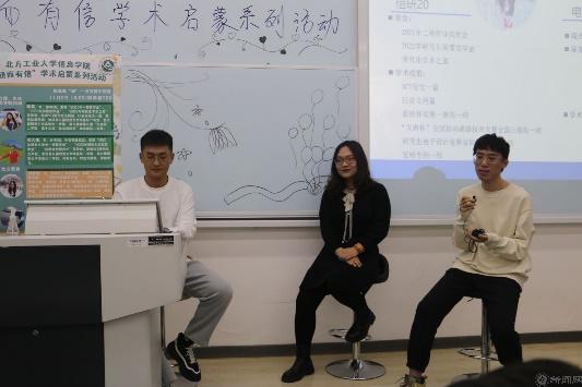 10月31日,第一场PPT分享会由白帆主持,王通、韩皓庭和奚梦瑶进行分享,就学科竞赛、校外实习、论文发表的经验等方面进行了分享交流,他们以自己的亲身经历告诉同学们大学生涯规划对于大学生的重要性,并分享了生涯规划的方法与经验。同学们纷纷表示学长学姐的分享干货满满,受益匪浅。