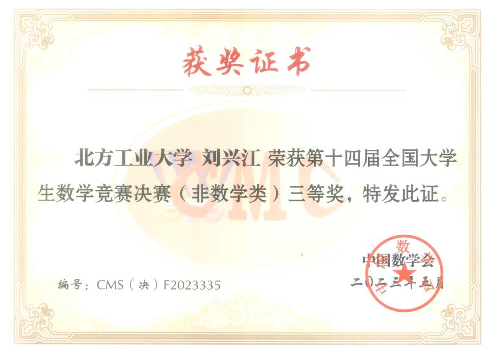 5月26日至28日,第十四届全国大学生数学竞赛决赛在广东工业大学举行。beat365官网电气与控制工程学院刘兴江同学作为北京赛区参赛代表之一参加了此次竞赛,并最终取得了非数学类全国三等奖的优异成绩。这是自全国大学生数学竞赛举办以来beat365官网学生首次入围决赛并成功获奖。