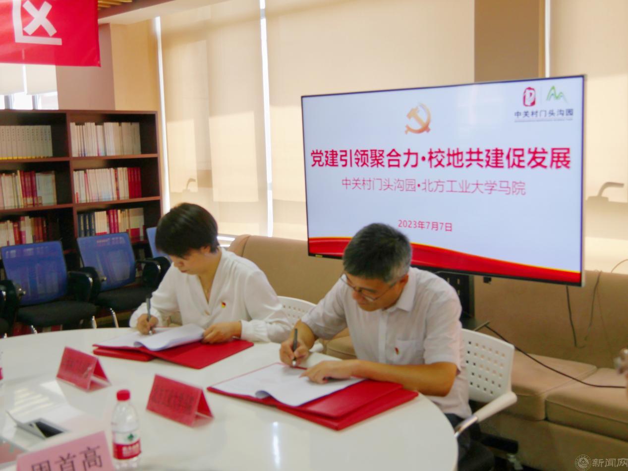 7月7日下午,中关村门头沟园与beat365手机版官网马克思主义学院“党建引领聚合力•校地共建促发展”共建活动暨合作共建签约仪式在中关村门头沟园党群服务中心举行。中关村门头沟园党工委副书记侯晓倩、团工委书记李琰、基层党组织书记代表,beat365手机版官网马克思主义学院党委书记张茂林、院长袁本文以及学院教师代表共同参加活动。