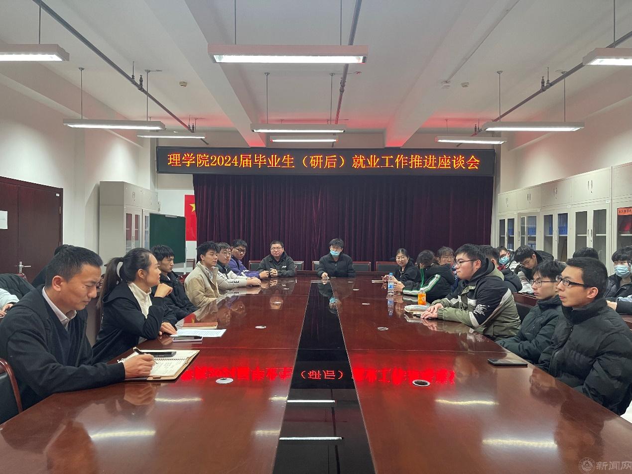 为进一步做好学院毕业生就业工作,增进学生对就业重要性的认识,引导学生树立正确的择业观和就业观。1月3日,理学院在博远楼805召开2024届毕业生(研后)就业推进座谈会。学院党委副书记贺映勇、本科毕业生辅导员夏丹梅以及2024届毕业班学生代表共计40余人参加座谈。