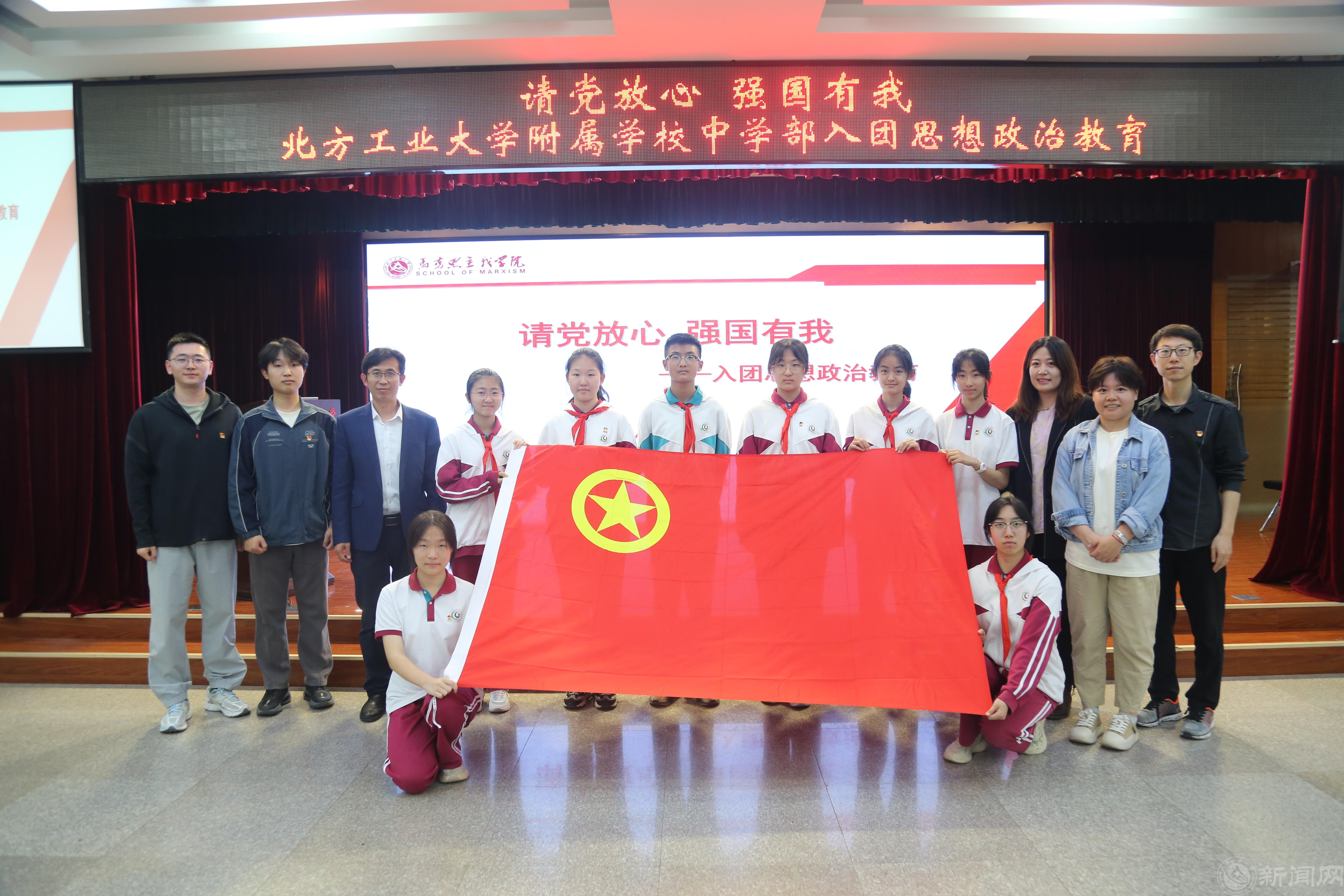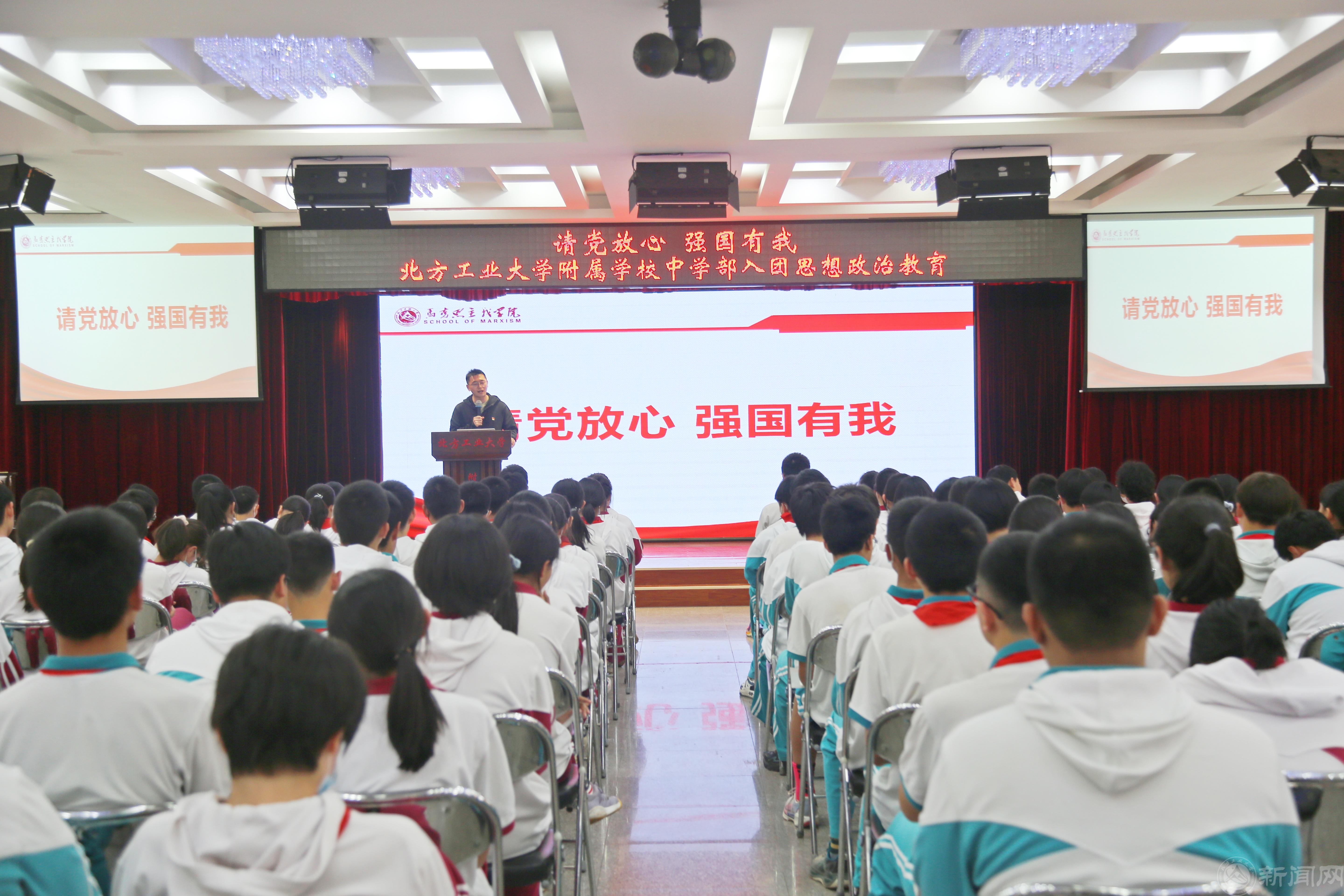 为进一步落实教育部《关于开展大中小学思政课一体化共同体建设的通知》精神,充分发挥思政课立德树人的根本任务。近日,beat365手机版官网马克思主义学院与beat365手机版官网附属学校联合举办五四青年节主题教育活动。本次活动由学院团委副书记、2022级研究生张华超、张震主讲,beat365手机版官网附属学校党总支书记沈景娟、校长刘永奇、副校长李娜,马克思主义学院团委书记闻亮,北工附中130名入团积极分子,共同参加了本次活动。