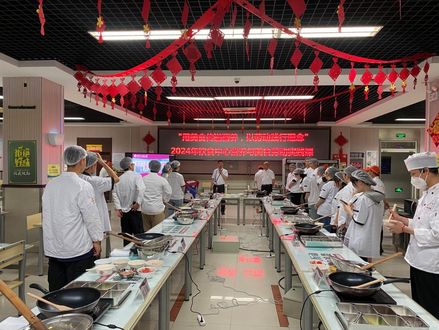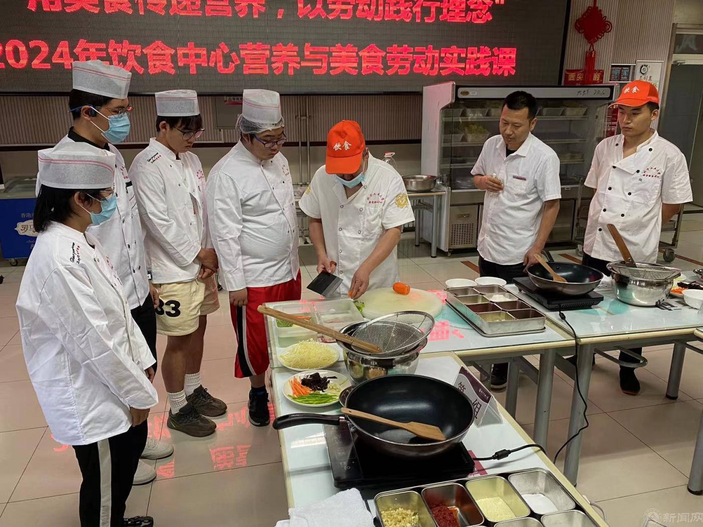 系列课程选择四道经典家常菜肴——宫保鸡丁、西红柿炒鸡蛋、鱼香肉丝、醋溜土豆丝作为教学内容。课程中,教工餐厅经理胡明学老师首先向同学们介绍了饮食服务中心的特色保障工作和开展劳动教育的情况。