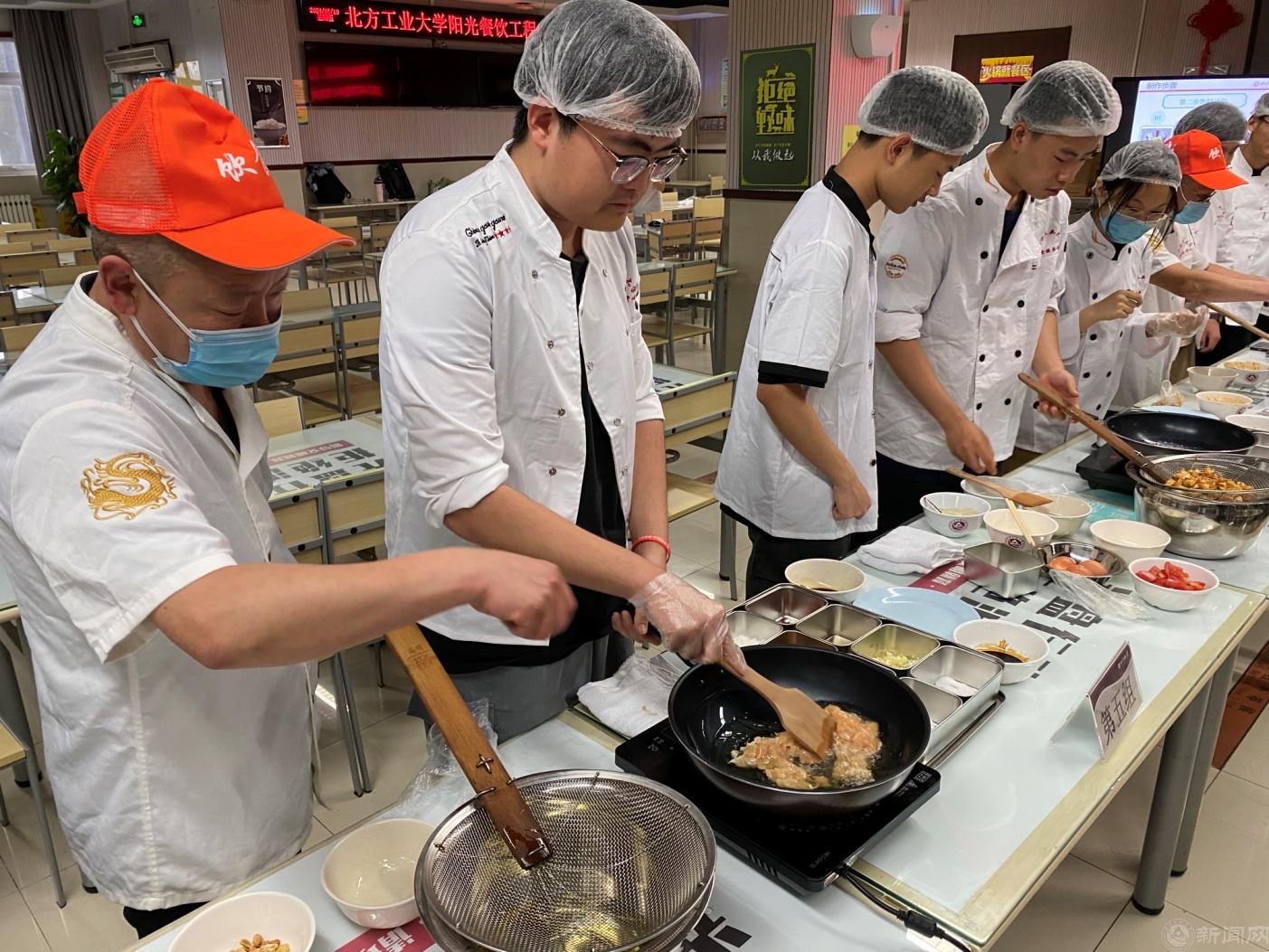 国教餐厅经理李关公和毓秀餐厅二层经理崔黎军分别作为主讲老师,从中华民族传统饮食文化为切入点,对四道菜肴的历史渊源、食材特点进行讲解,副食师傅赵奇磊和李成海详细演示了制作步骤,学生们聚精会神地聆听观摩。