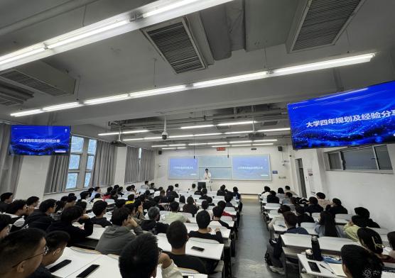 电类专业分享会上,保研至中国科学院信息工程研究所的何瑞同学向新生们分享了他的保研经历。详细介绍了保研的流程、准备策略以及面试技巧,鼓励同学们提前规划,积极准备。保研至东南大学的罗其榕同学从个人介绍、自身规划两方面出发,对新生的学习、科研竞赛等方面作了详细的建议。作为集体上岸宿舍的成员之一,考研至本校的马天禹同学分享了他的考研心得。为新生解答学分绩点的计算方式,并强调同学、宿舍关系相处融洽会为自己的大学生活增添不一样的精彩。留学至悉尼大学的杨明昊同学,从整体规划、语言准备、择地择校、其余准备四方面为有志于留学的同学提供了宝贵的参考。参军结束的张宸、宋骏同学通过训练照片介绍了他们的部队生活,并详细解读退役士兵复学入学、就业创业的政策。入职国企国创中心的郭骏豪同学就自己的大学经历,详细回答了三个问题:毕业后能从事哪些工作?如何培养与工作相关的能力?考研和就业如何选择?