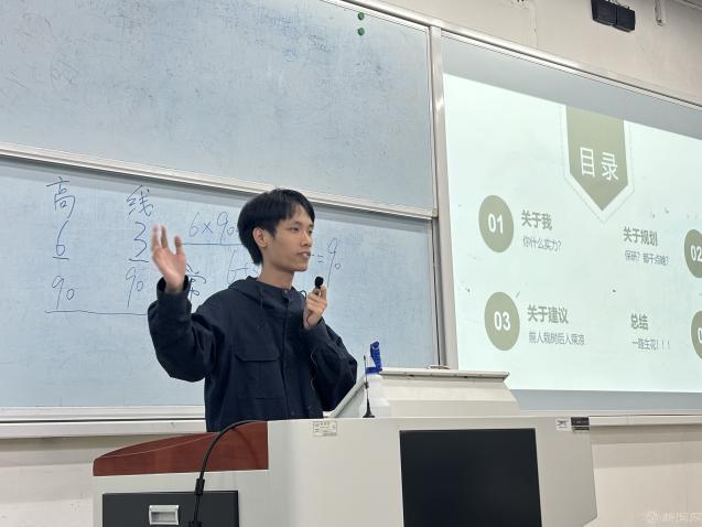 计类专业分享会上,考研至本校的刘桁铭同学分享了自己在课程学习、竞赛、考研、就业方面的丰富经验,并着重介绍了科研竞赛的相关信息。保研至本校的刘苑同学详细讲述了保研的时间流程,提醒同学们要根据往年目标学校的夏令营、预推免的时间、做好初步的准备。并祝福同学们努力学习,拥有美好的未来。留学至新南威尔士大学的颜弈杰同学告诉同学们要不断提高自身的竞争力,并着重强调了科研和竞赛的重要性。他还向同学们推荐了关注赛事的网站和发表科研论文的博主,为同学们提供了宝贵的经验。另一位留学的刘祚先同学认为绩点和语言成绩是申请国外院校的重要因素。另外,一份充实的简历是申请环节中必不可少的一部分,提升简历的充实度要从项目和竞赛入手。留学杜克大学的李天昊同学通过视频方式介绍了自己从准备语言考试,到撰写申请文书,再到面试准备的全过程。他强调了时间管理的重要性,建议同学们提前规划,合理安排时间。参军入伍的李昱江同学介绍了他的军旅生涯以及各类征兵政策,他鼓励有志青年要积极投身国防,为国家的安全和发展贡献力量。