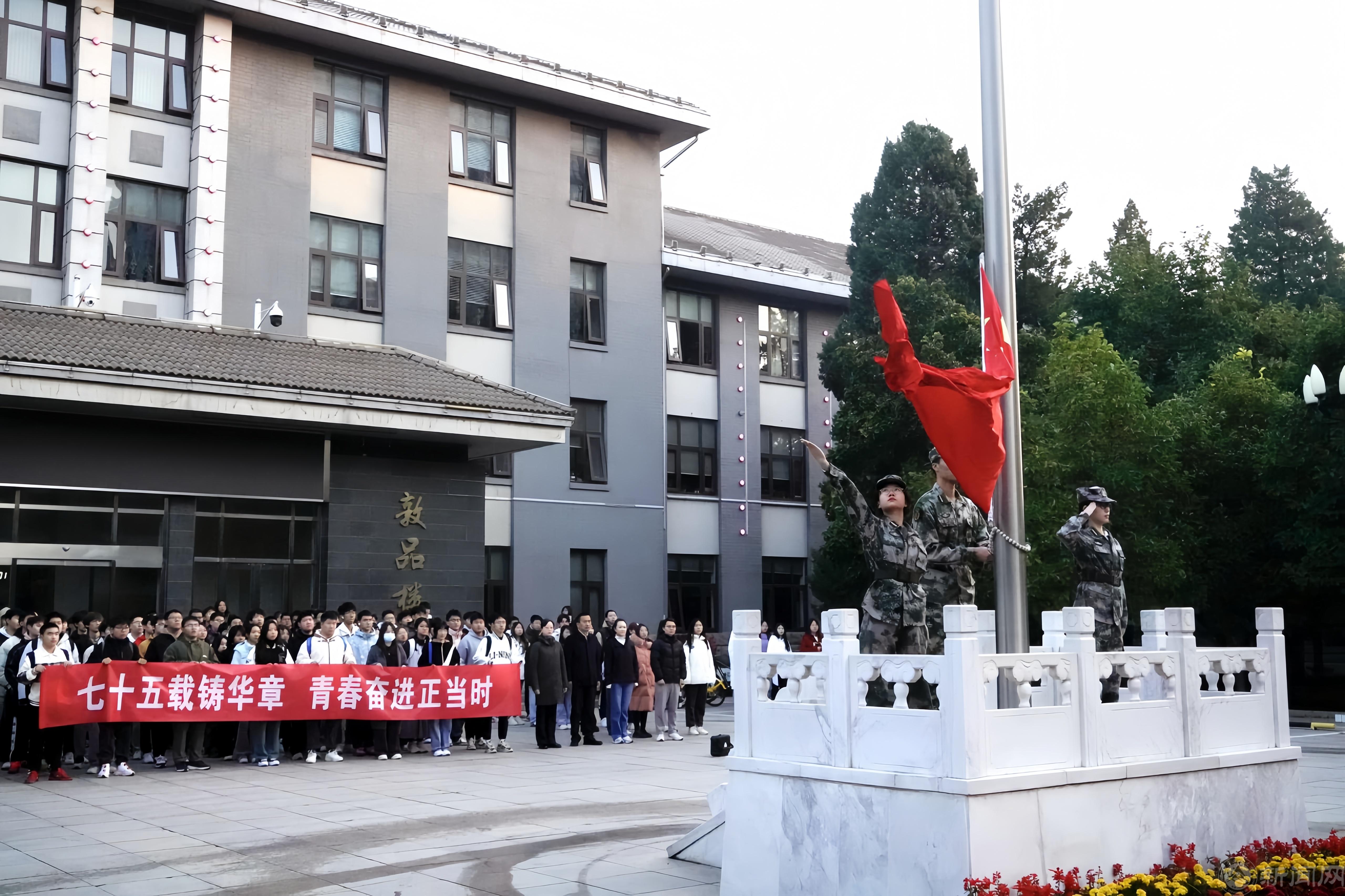 盛世华诞,山河壮丽。10月21日,理学院举行了以“七十五载铸华章,青春奋进正当时”为主题的升旗仪式。理学院党委书记杨嵩松、党委副书记贺映勇、各年级辅导员及24级全体新生参加了此次升旗仪式。