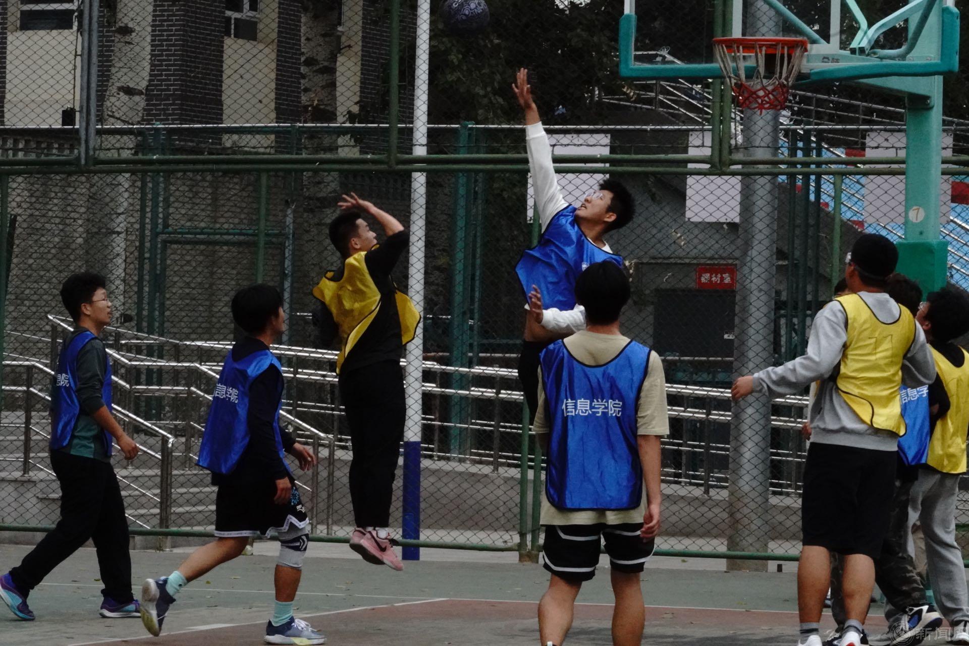 新生篮球赛以班级为单位进行,赛程设计了循环赛、淘汰赛、院队交流赛等环节。随着裁判的一声声哨响,一场场比赛拉开帷幕。阳光下的学子们在篮球场上意气风发,尽显青春活力。接球、下蹲、投篮,篮球在空中划过一道道优美的弧线,落入篮筐。各个球队在篮球场上挥洒汗水,使用精湛的篮球技术和周密的策略,完成一次次紧密的配合和一次次精准的投球。速度与力量震撼对抗,技巧与智慧精妙博弈,球员们共同编织了一场精彩绝伦的篮球盛宴!