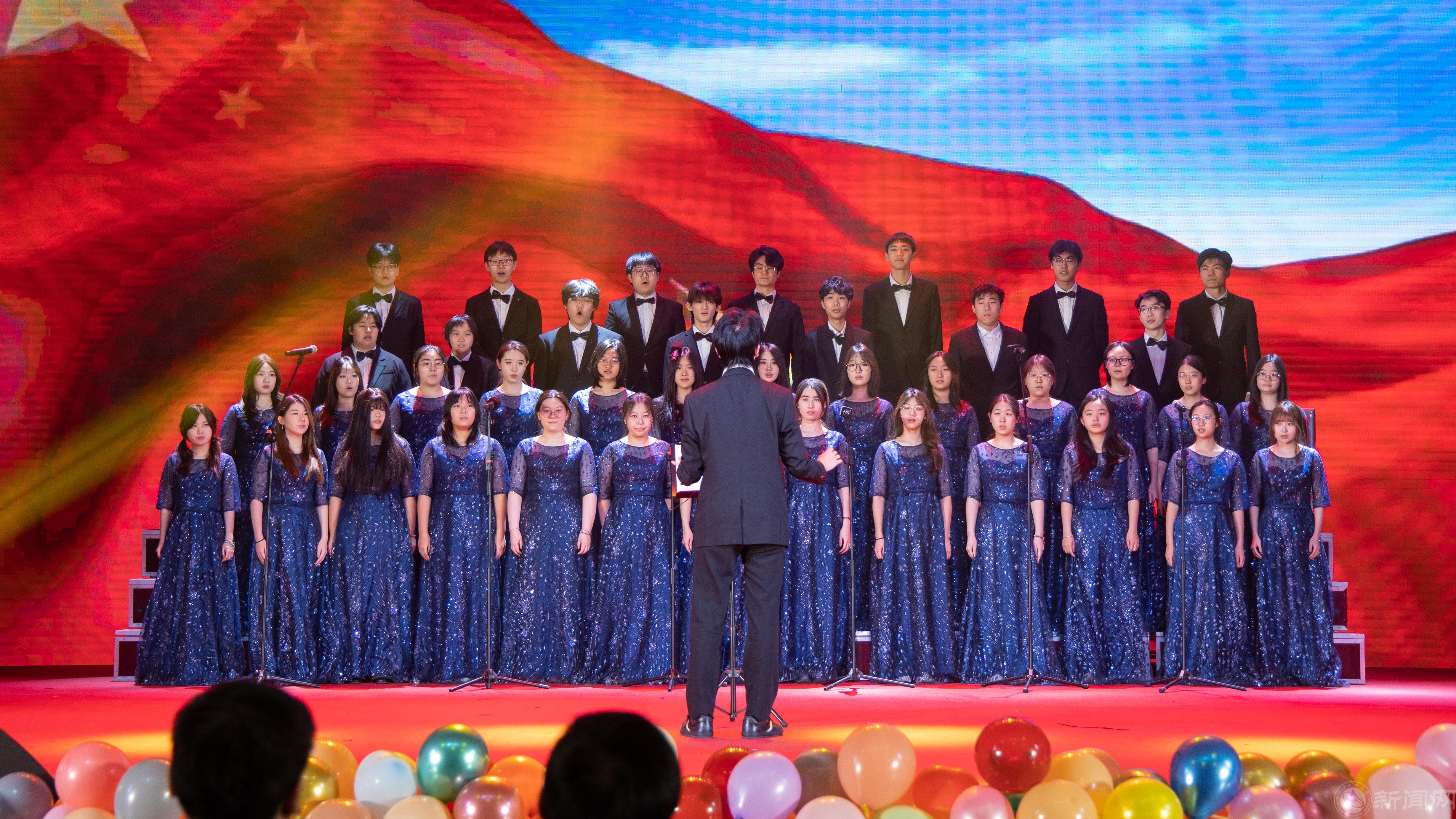 在归章“同心颂∙表白祖国”中,学院师生代表以歌曲《我爱你中国》为载体,用最深情、最直接、最浪漫的方式向祖国母亲告白,呼应了“序章”中“献礼祖国”的决心。