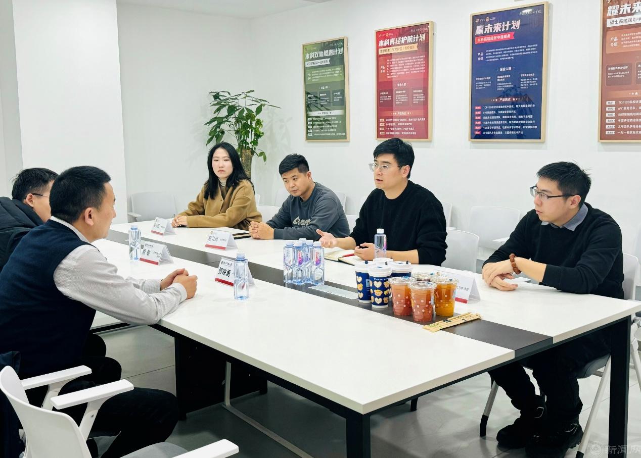 北京学为贵教育科技有限公司北京校区教育副校长艾云峰、市场部高校合作主管经理崔雨农对学院的到访表示热烈的欢迎。艾云峰介绍了学为贵教育科技集团的发展史并表示学为贵教育科技集团致力于为广大学生提供高品质的留学考试培训、一站式全方位全球留学服务,贺映勇介绍了理学院人才培养模式、专业分布及2025届毕业生情况。双方在建立实习实训基地的基础上,一致同意发挥各自优势,通过校企深度融合促进学生实现高质量实习与就业,实现合作共赢。