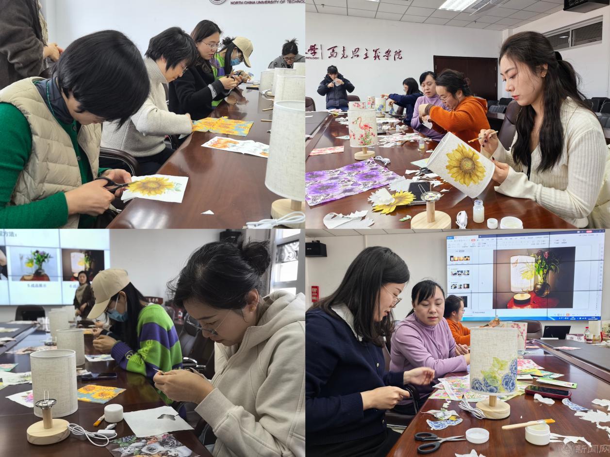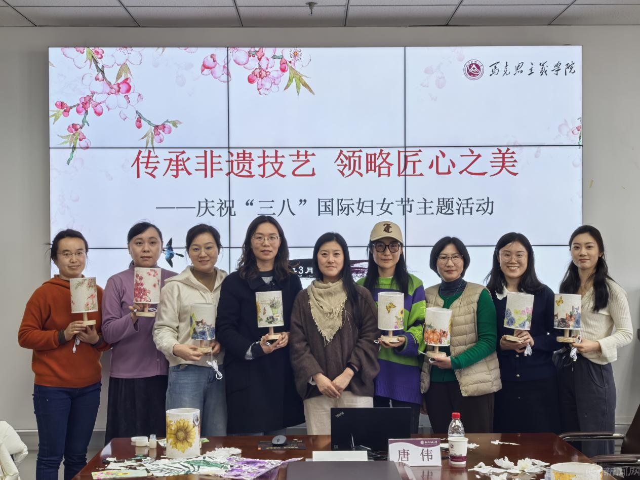 为庆祝第115个“三八国际妇女节”,丰富女教师精神文化生活,马克思主义学院分工会3月5日精心组织了一场“传承非遗文化 体验匠心之美”主题活动。学院女教师齐聚一堂,共同参与一场别开生面的蝶古巴特台灯制作体验。